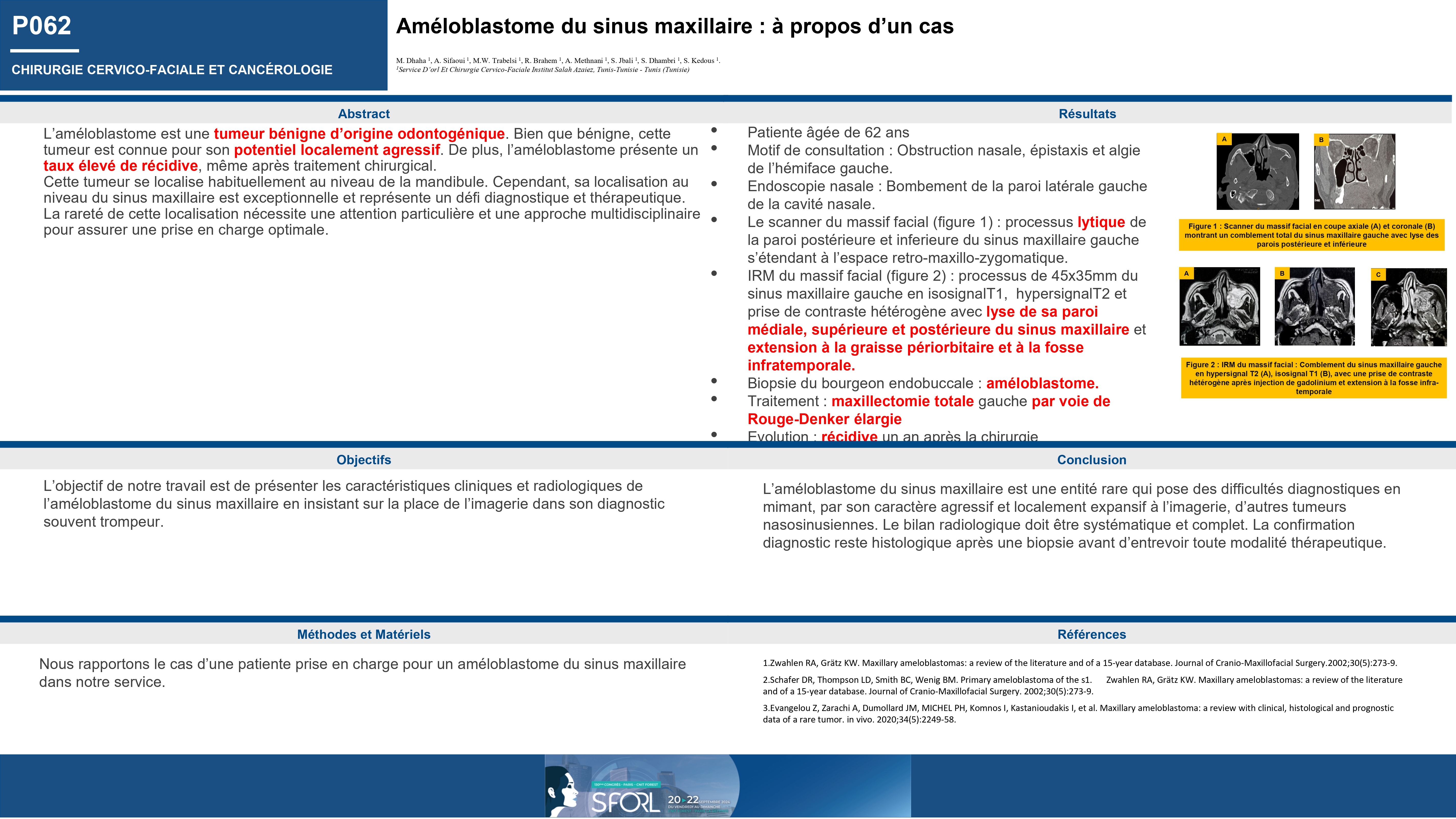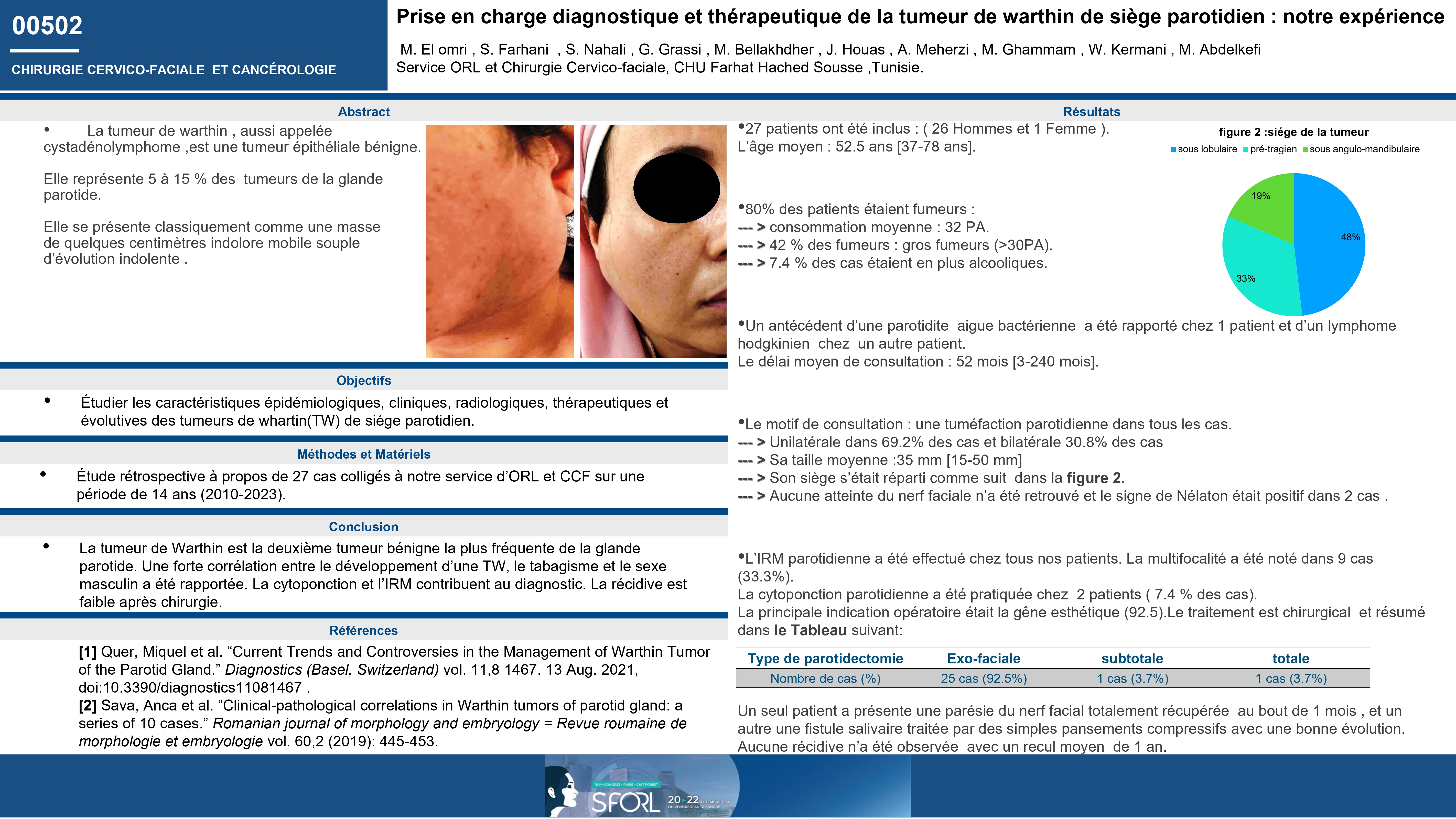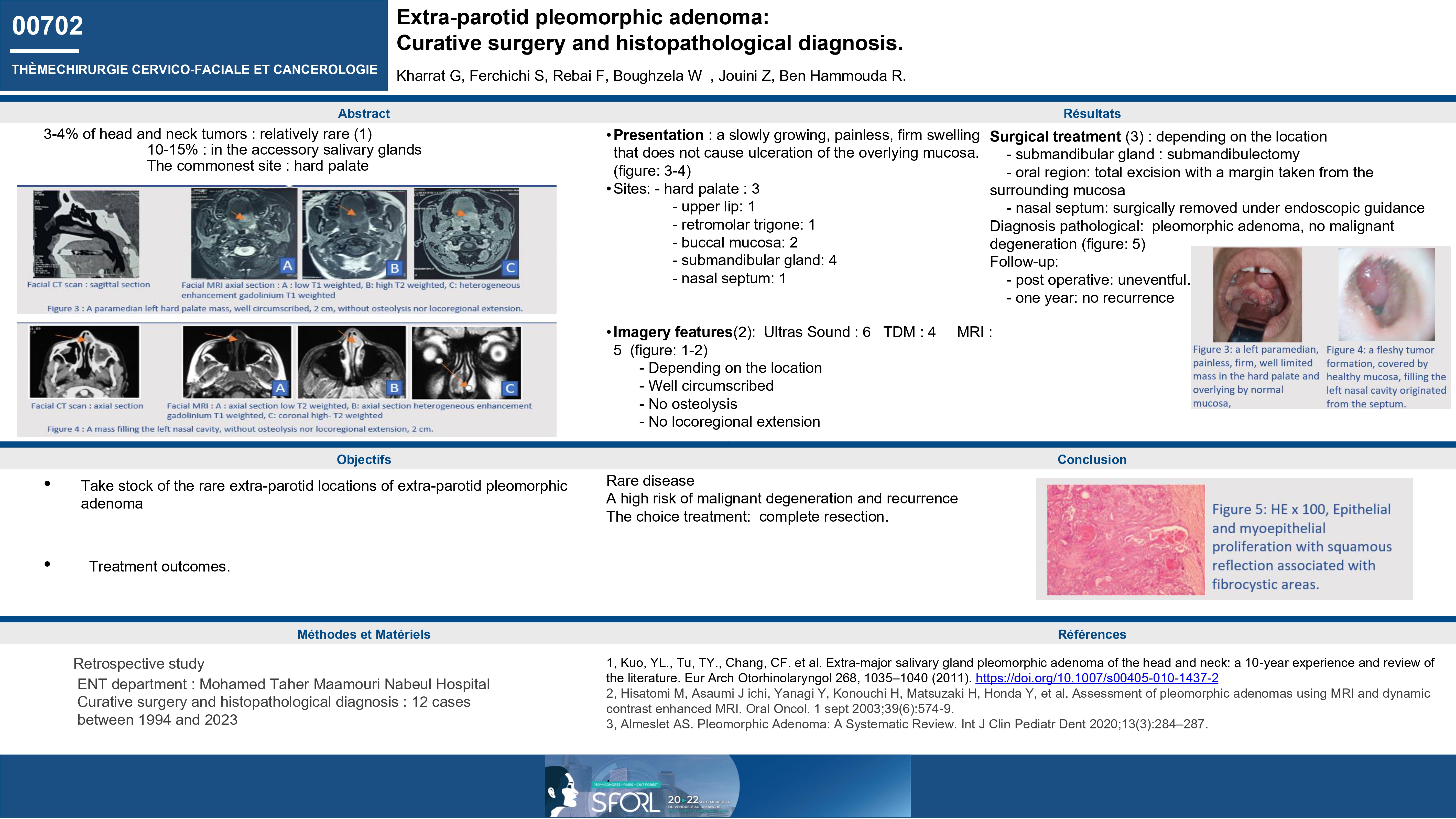 | P037 – Tumeurs salivaires à localisation ectopique : À propos d’un cas exceptionnel | Chirurgie cervico-faciale et Cancérologie | chirurgie-cervico-faciale-et-cancerologie | |