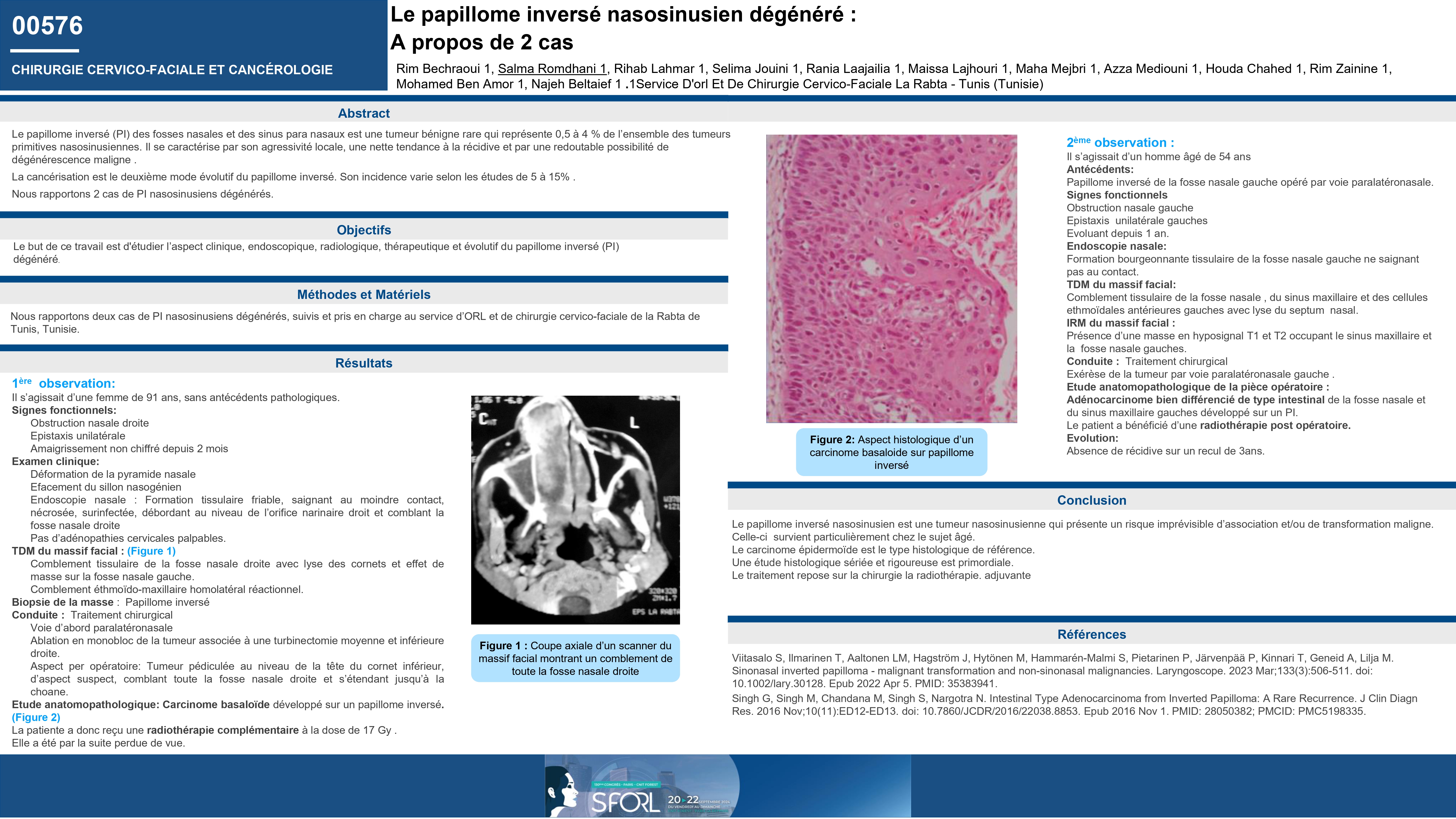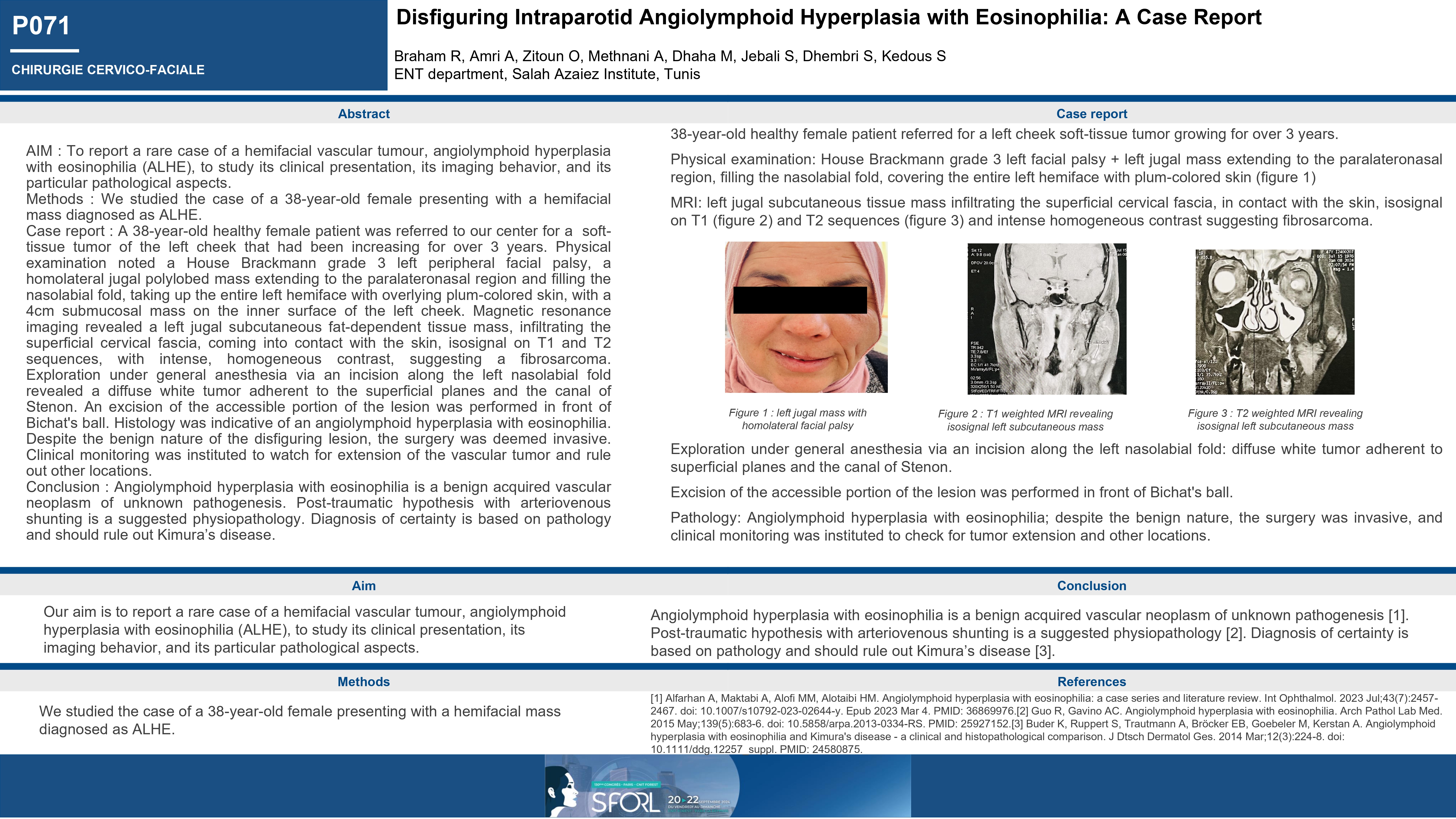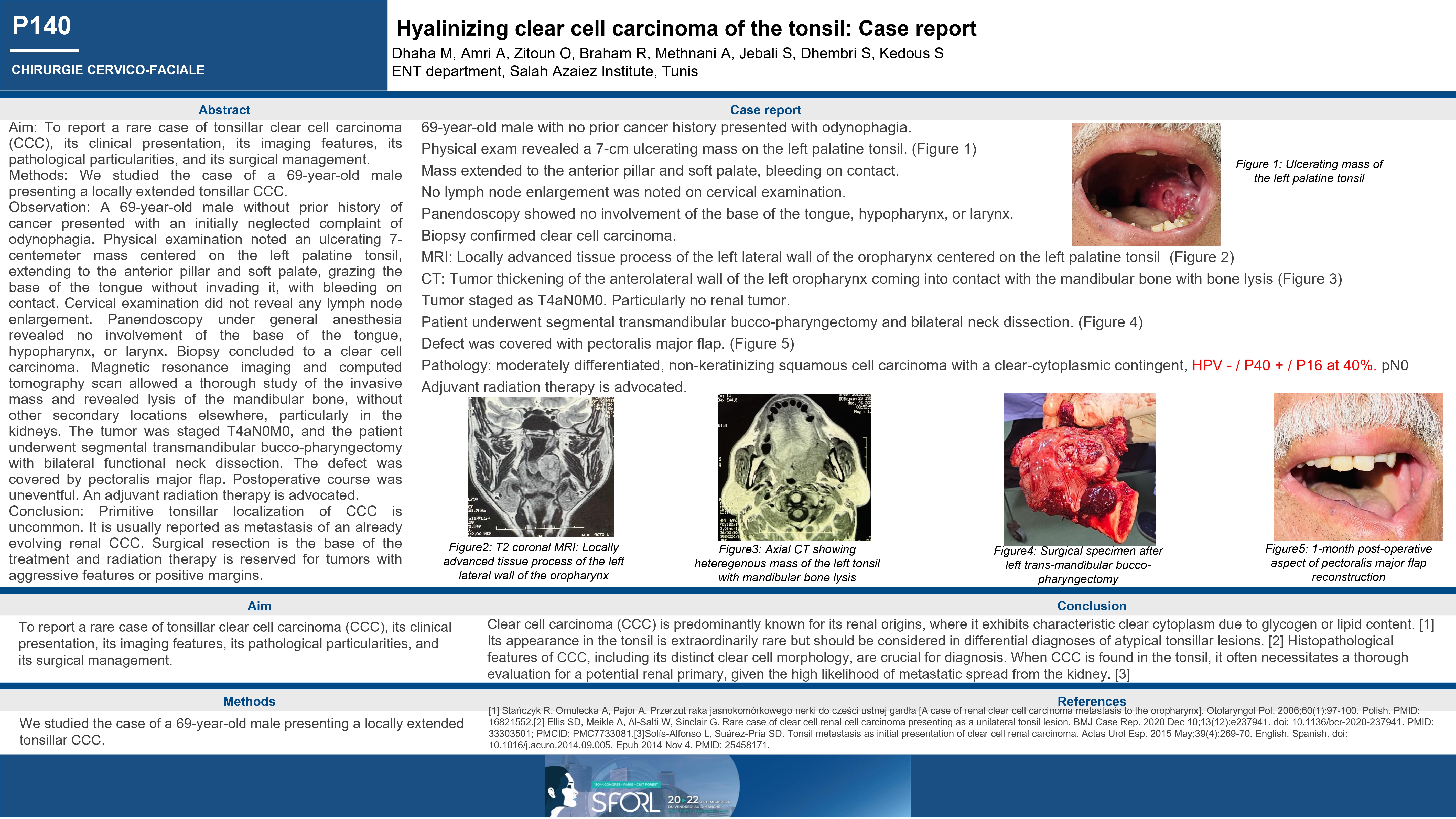| P037 – Tumeurs salivaires à localisation ectopique : À propos d’un cas exceptionnel | Chirurgie cervico-faciale et Cancérologie | chirurgie-cervico-faciale-et-cancerologie | |