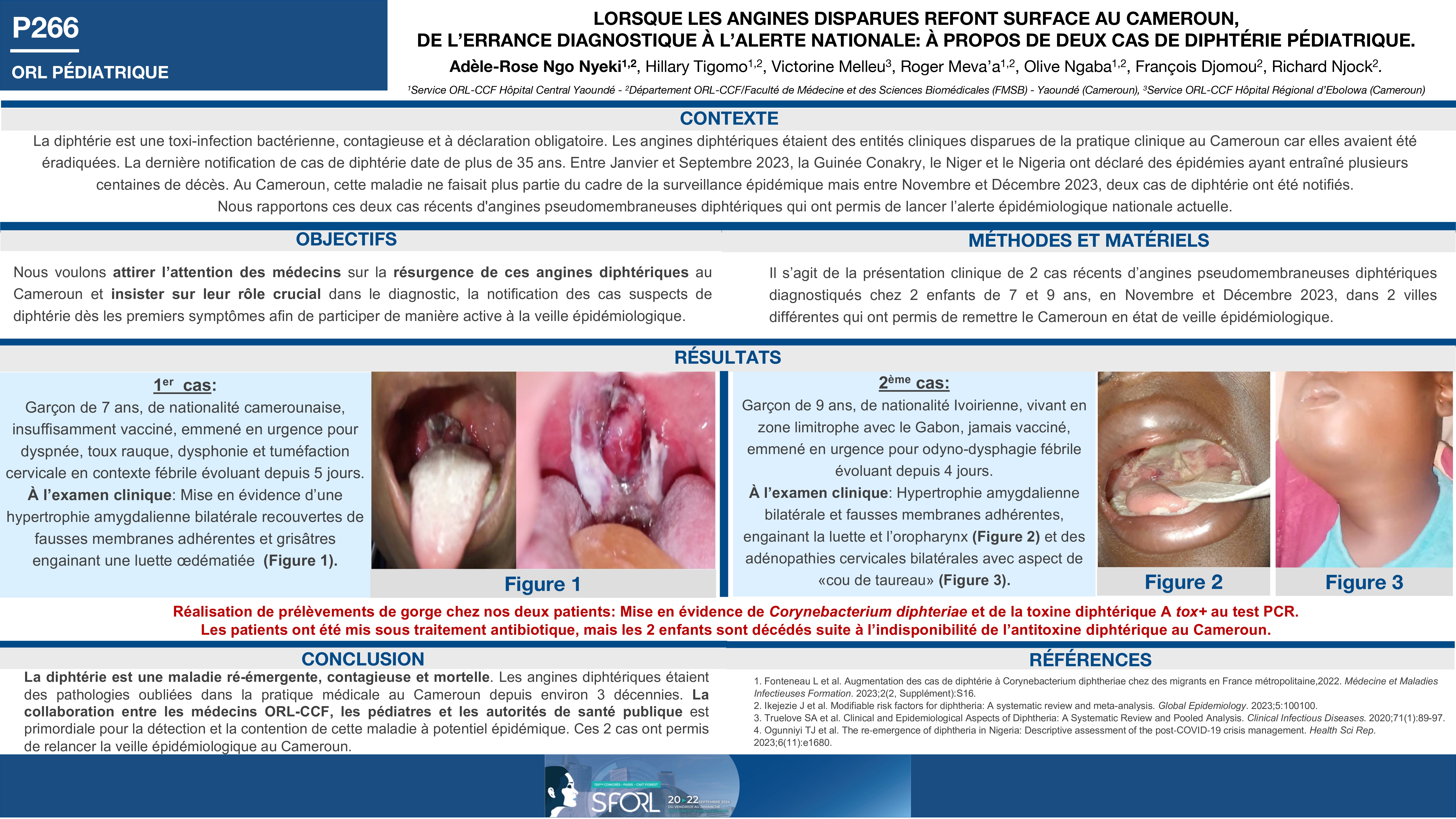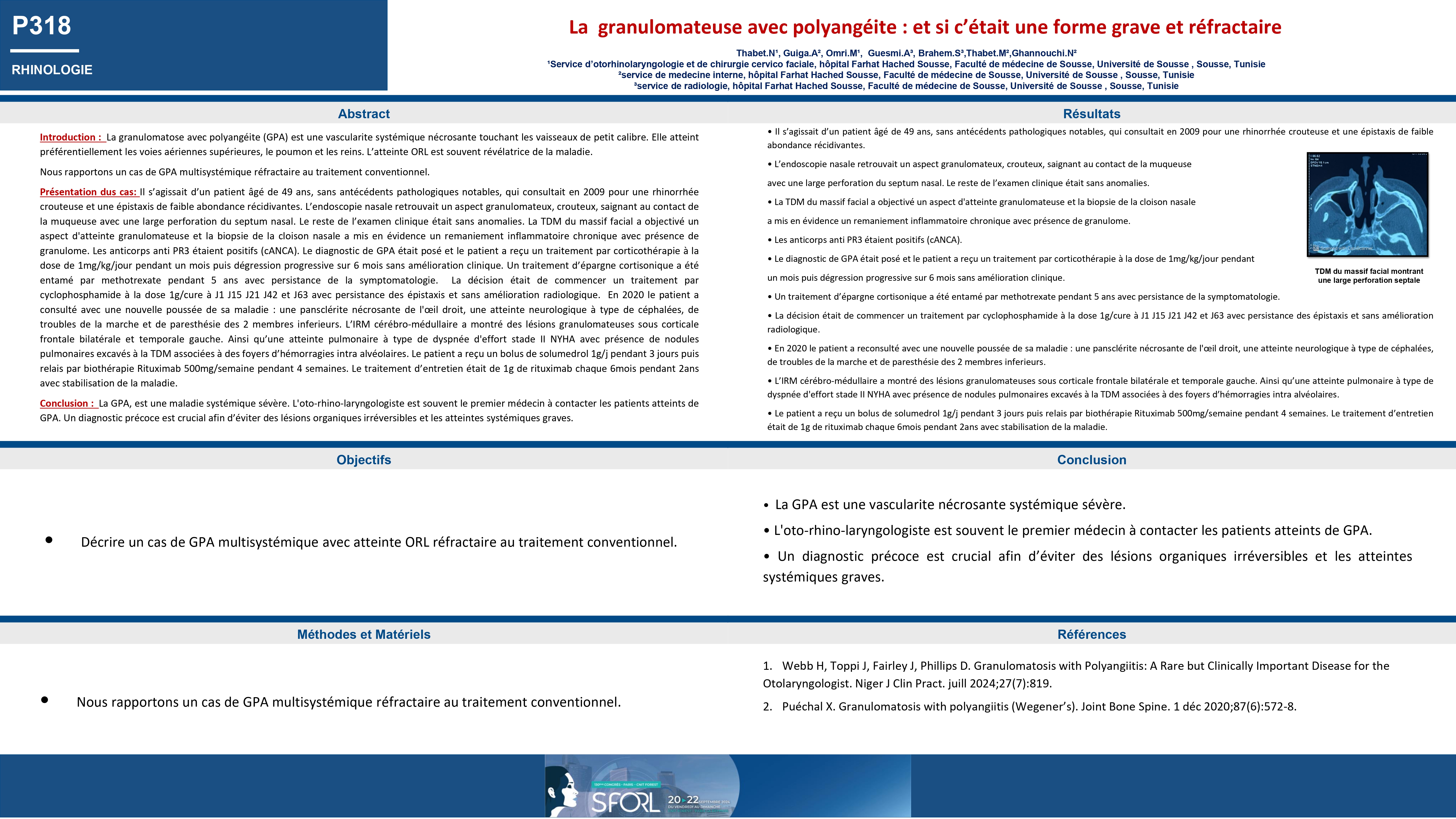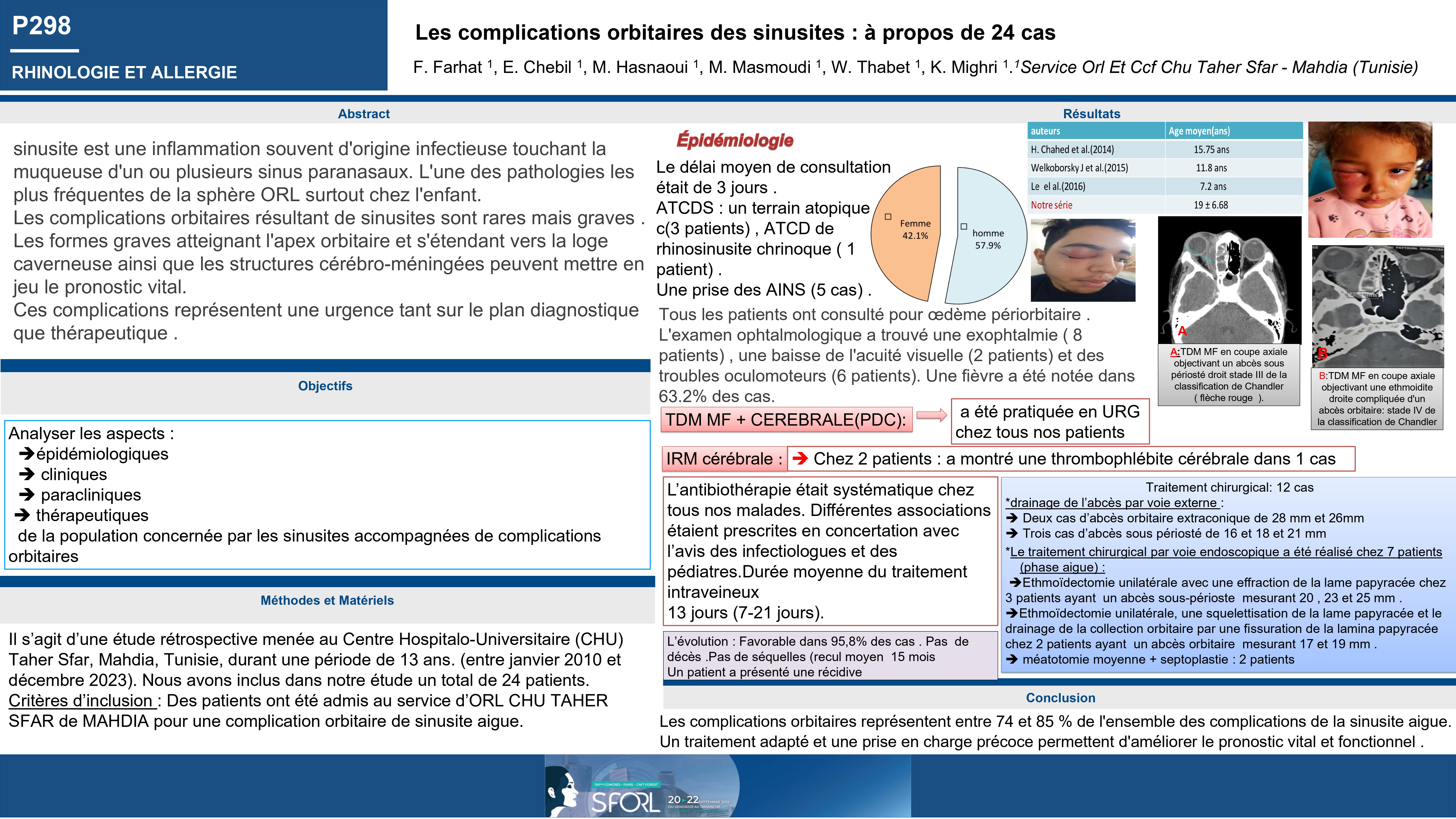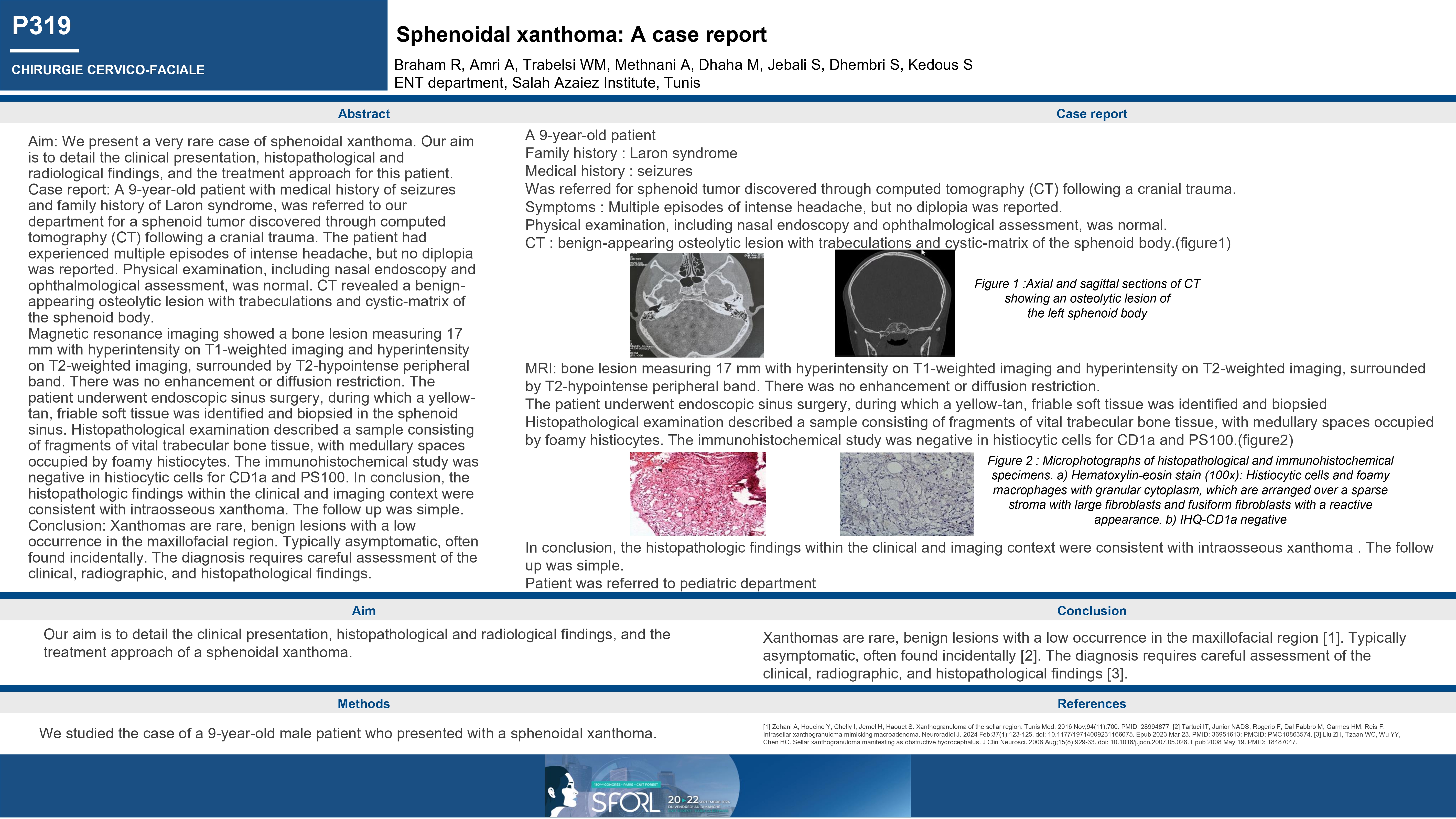 | P040 – Exceptional association complicating a peritonsillar abscess: Lemierre syndrome and cavernous sinus thrombosis | Chirurgie cervico-faciale et Cancérologie | chirurgie-cervico-faciale-et-cancerologie | |