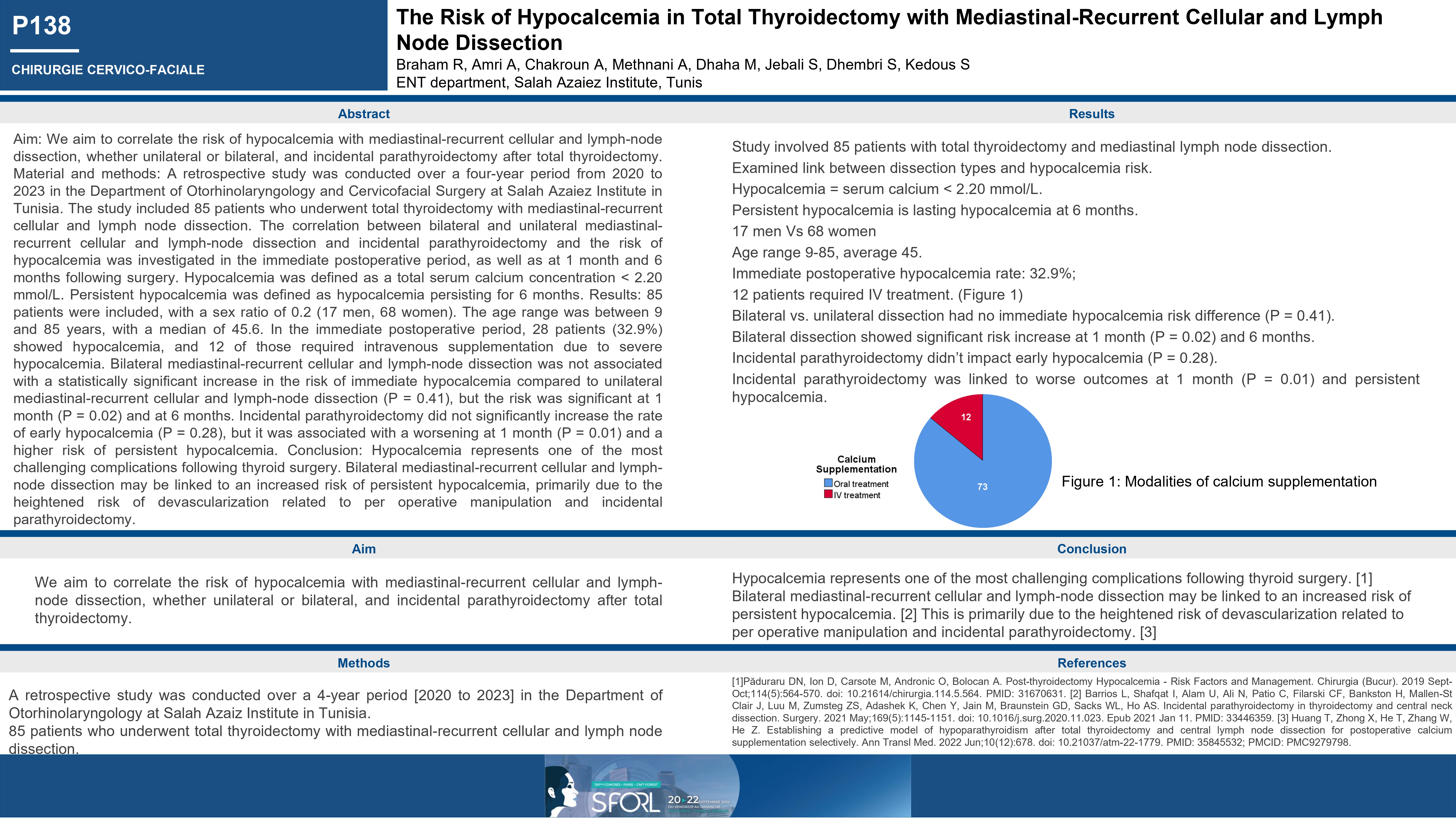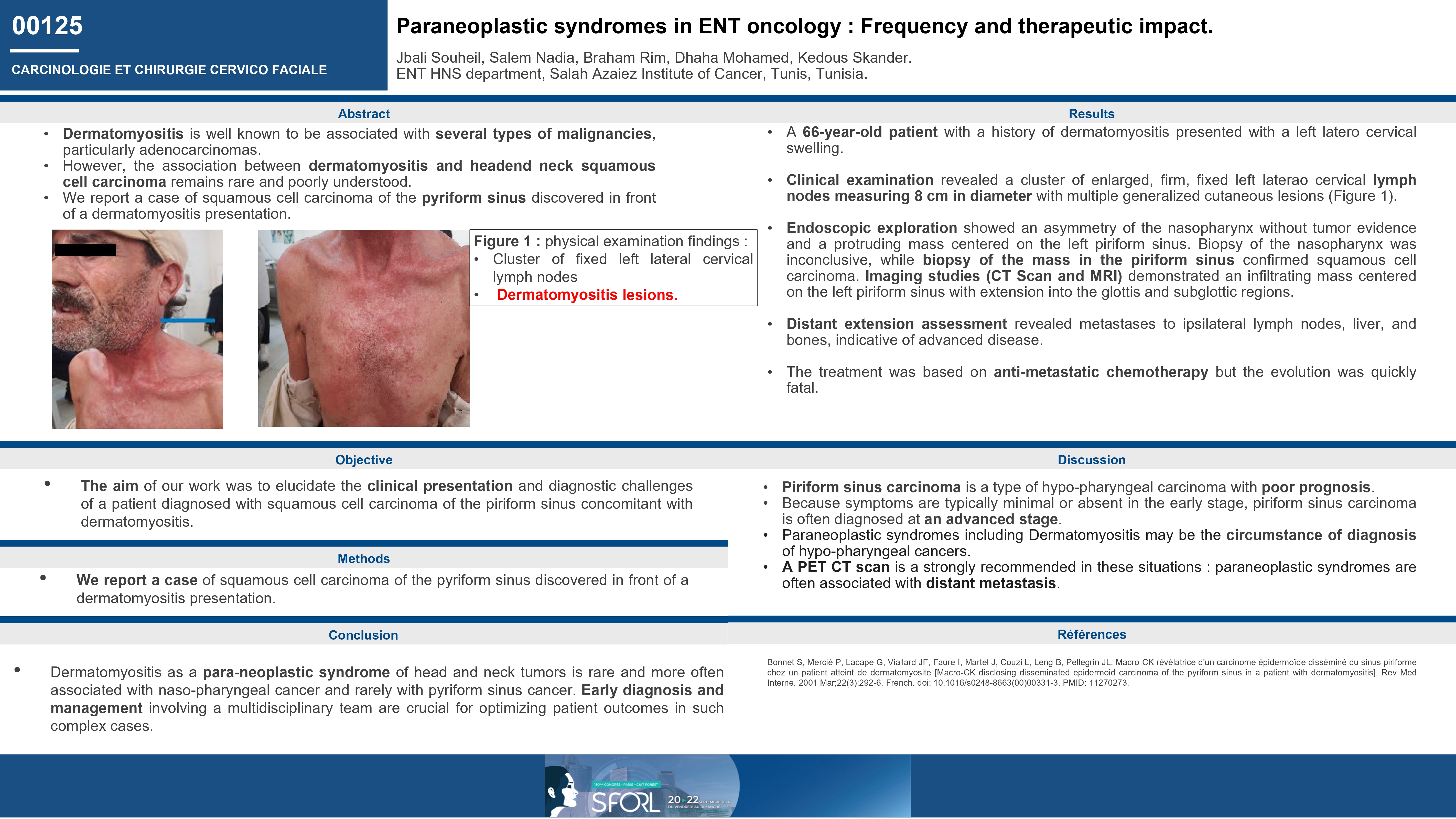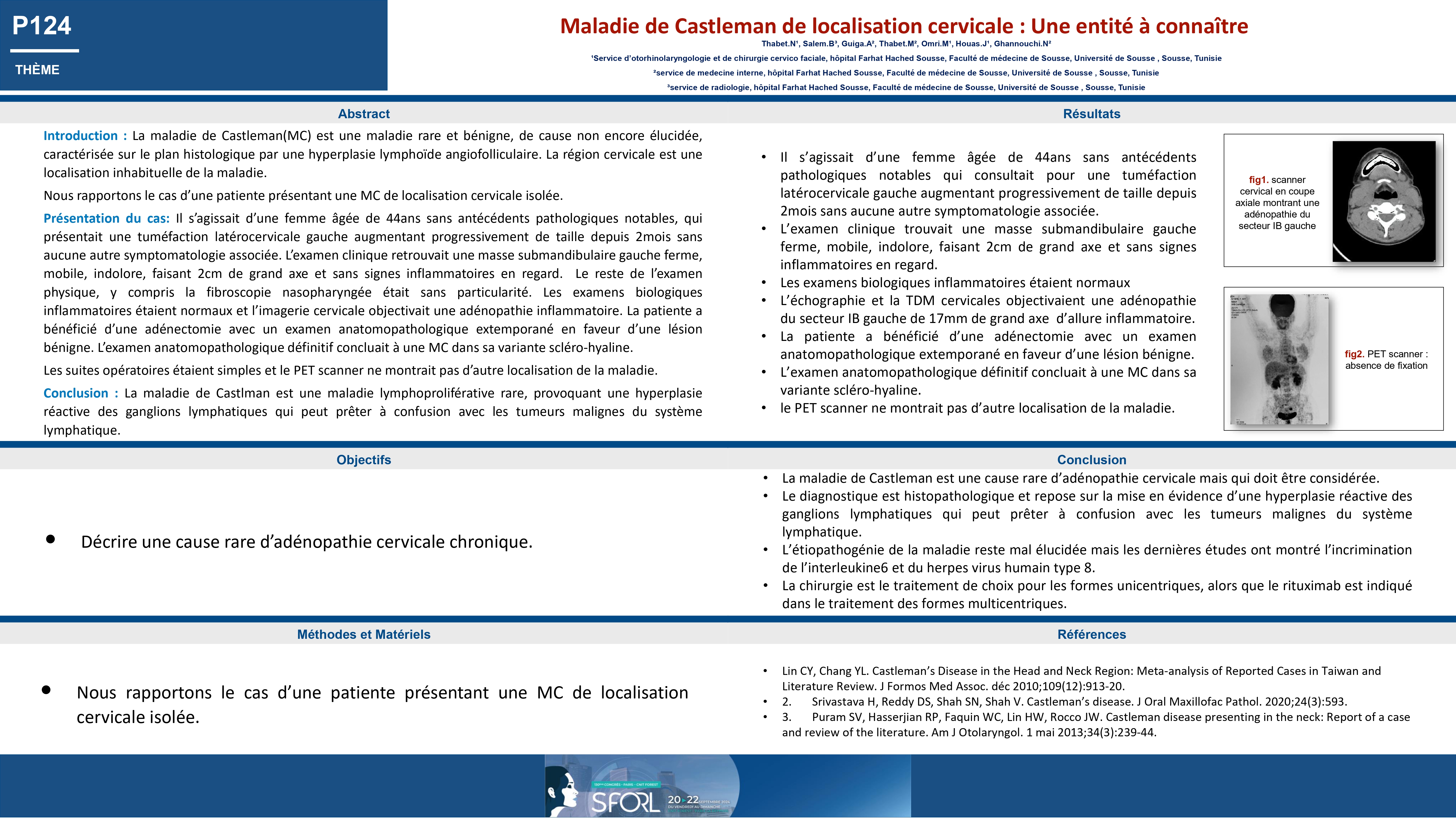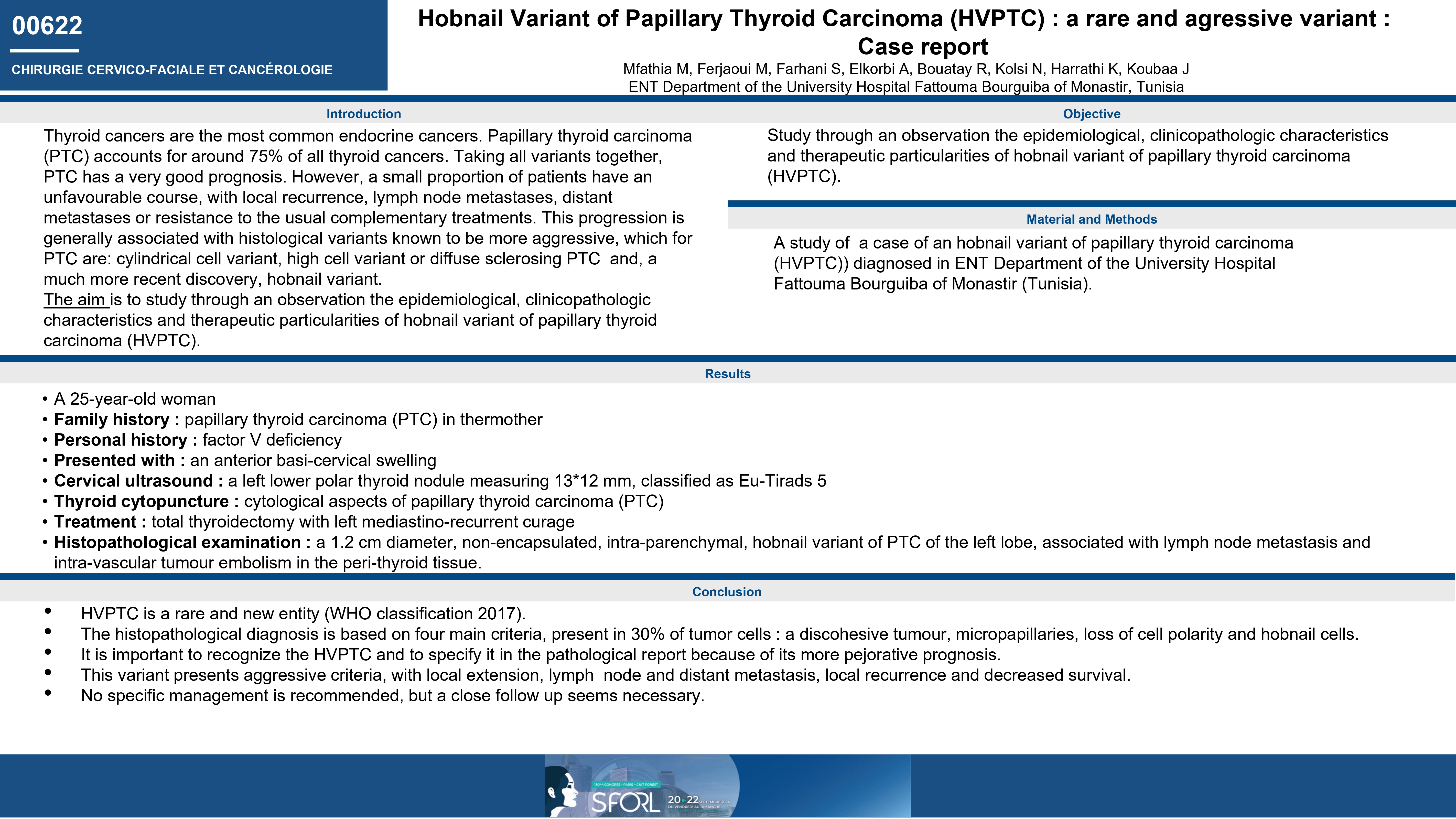 | P056 – Lateral metastasis of papillary thyroid carcinoma, what else can it be? | Chirurgie cervico-faciale et Cancérologie | chirurgie-cervico-faciale-et-cancerologie | |