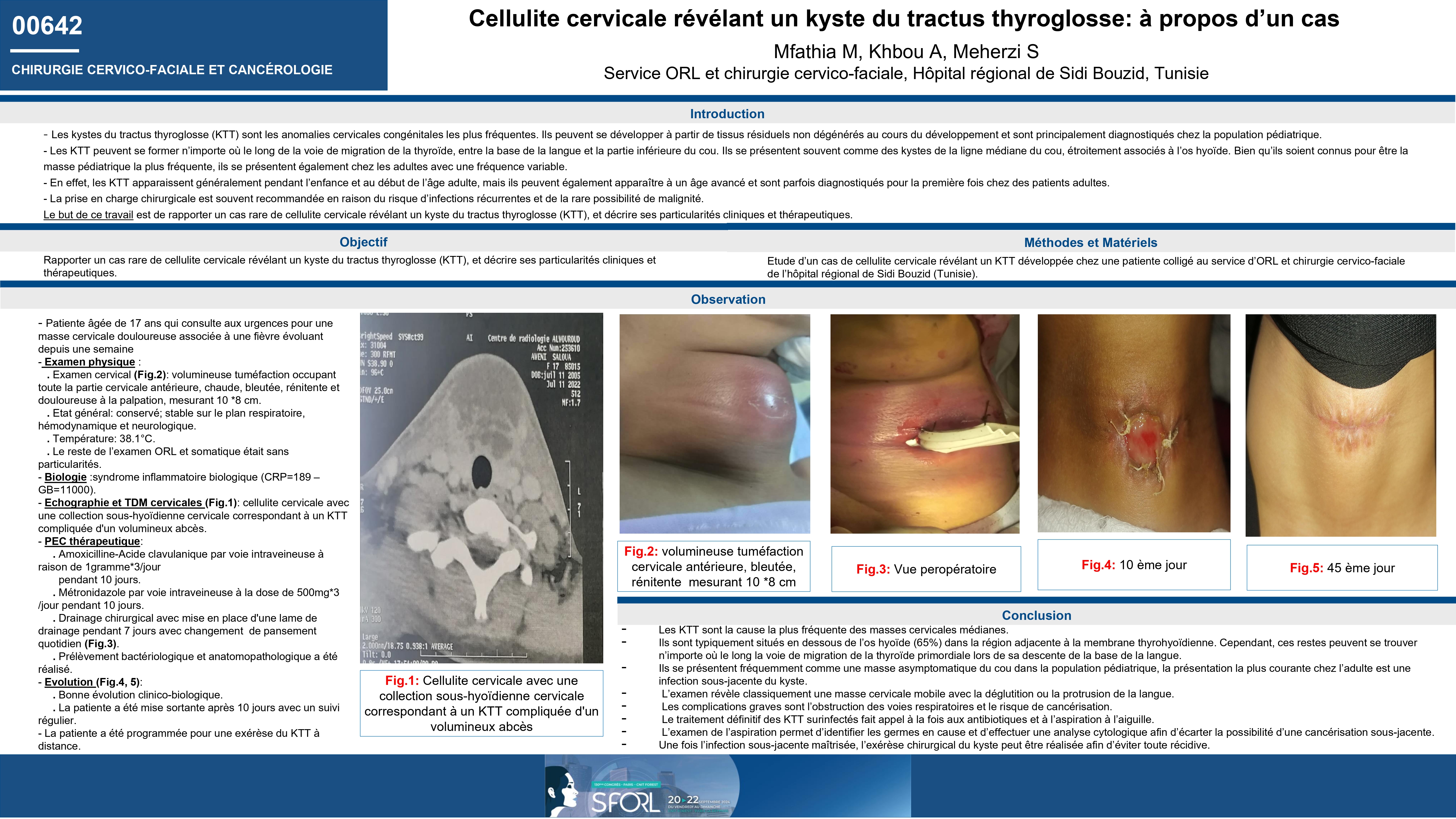 | P057 – Cellulite cervicale révélant un kyste du tractus thyroglosse: à propos d’un cas | Chirurgie cervico-faciale et Cancérologie | chirurgie-cervico-faciale-et-cancerologie | |