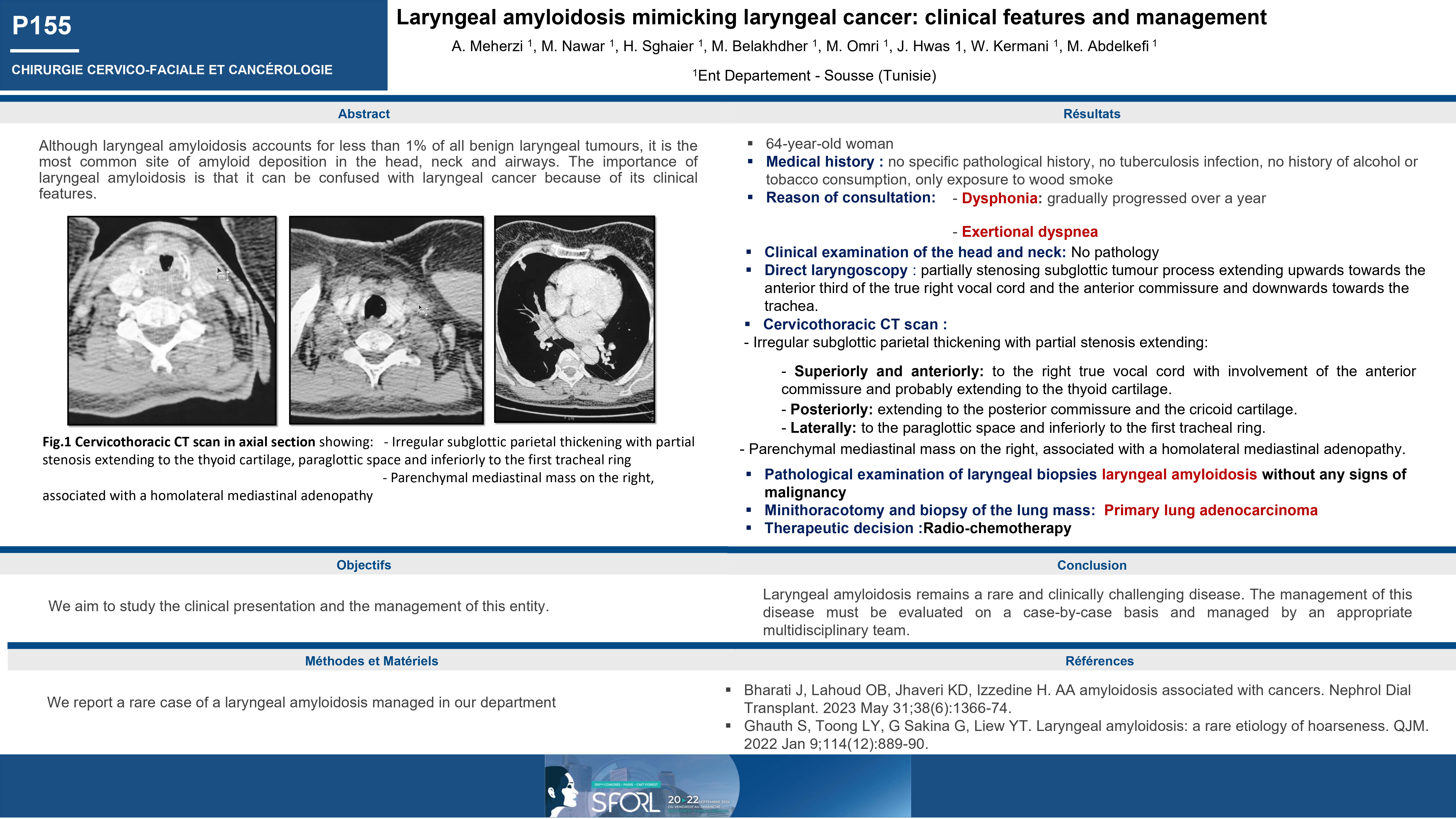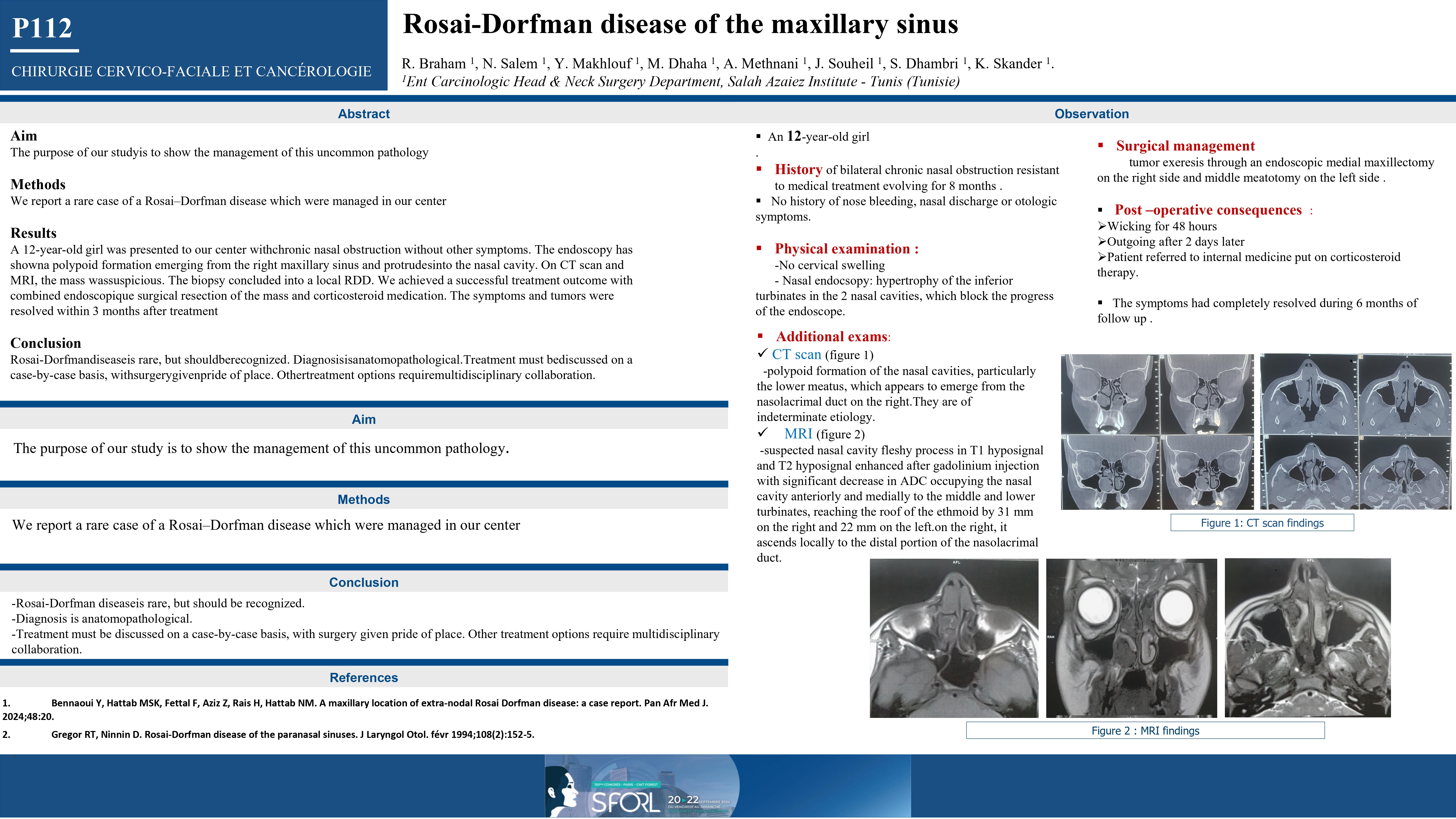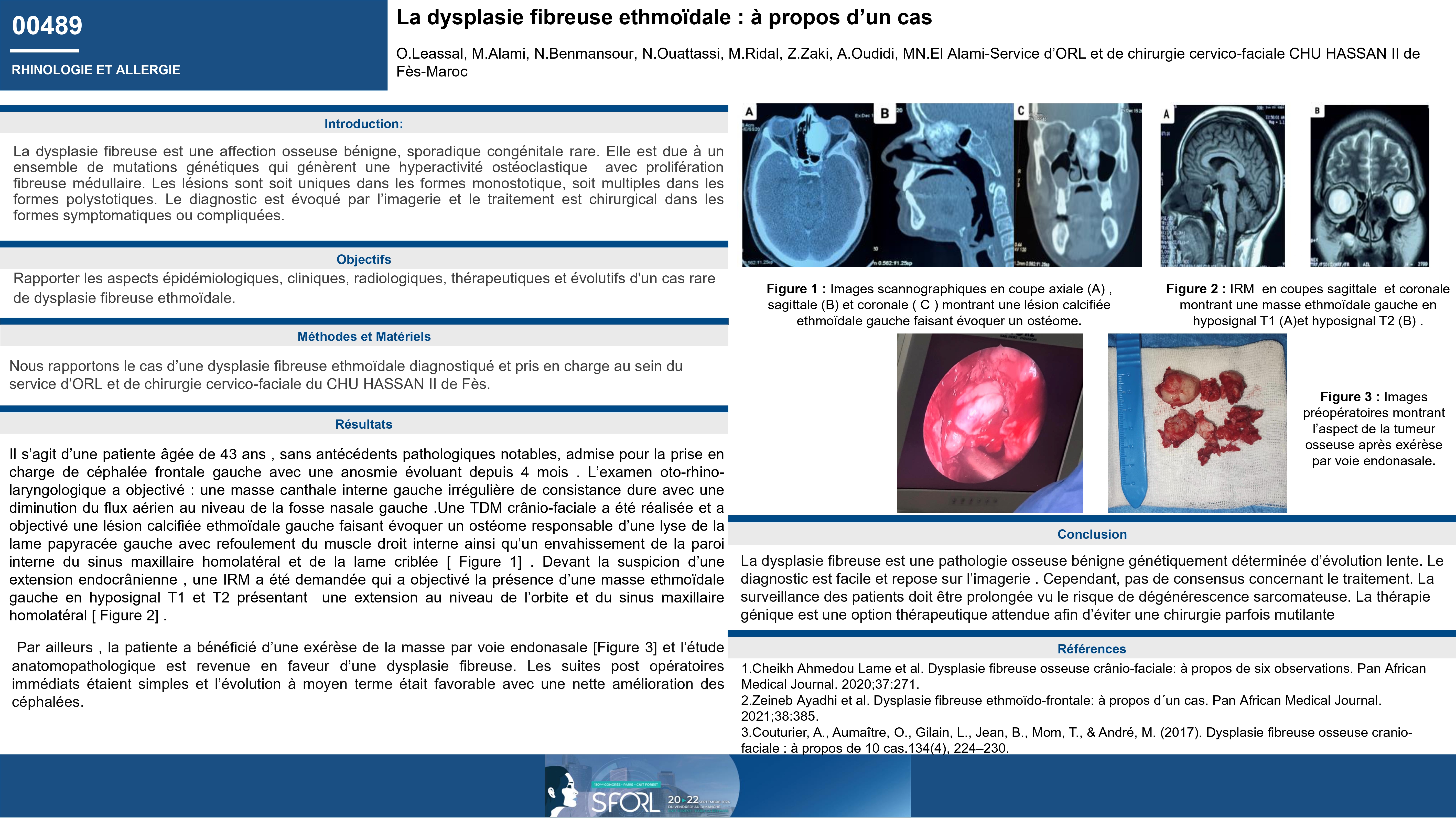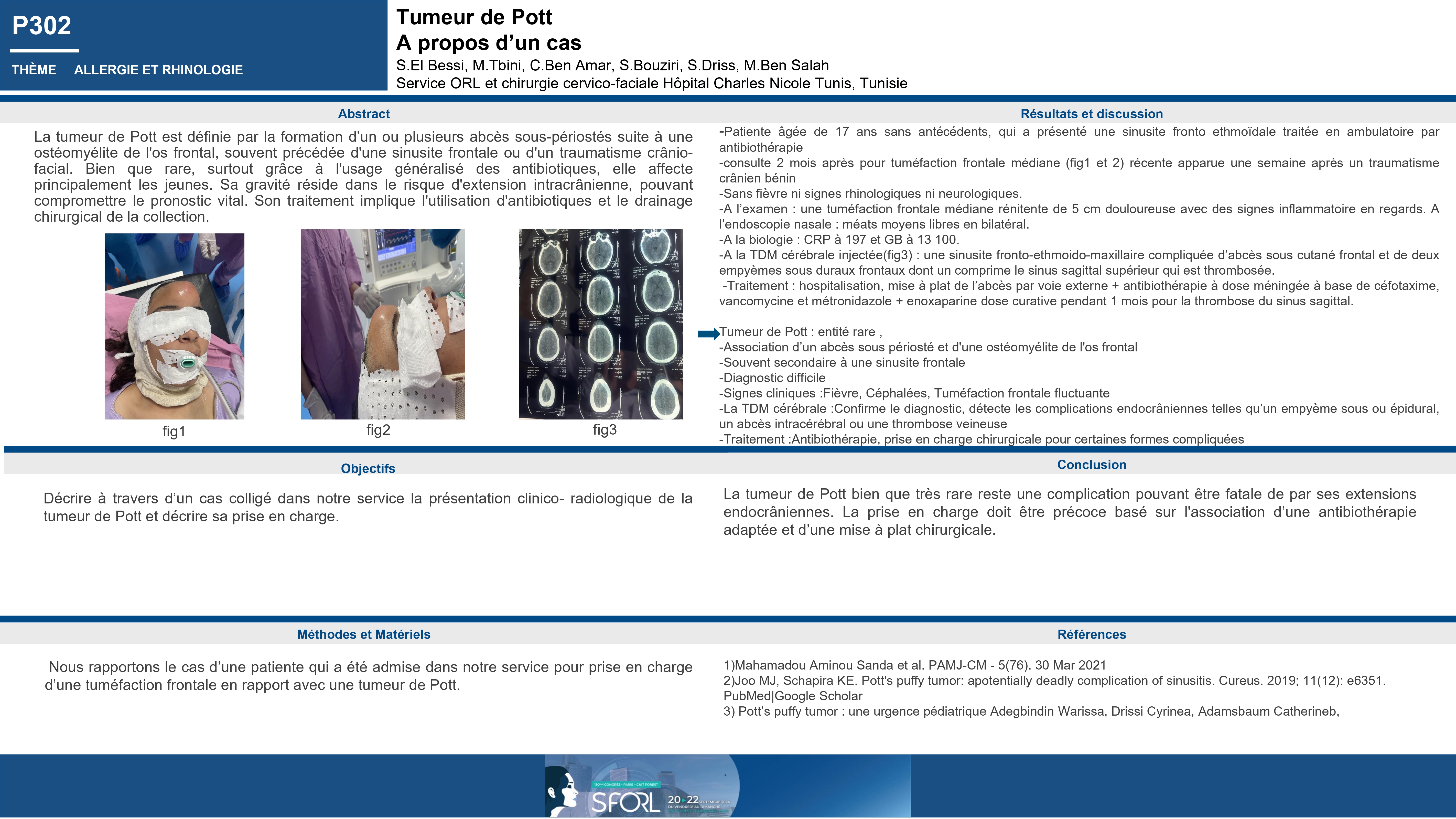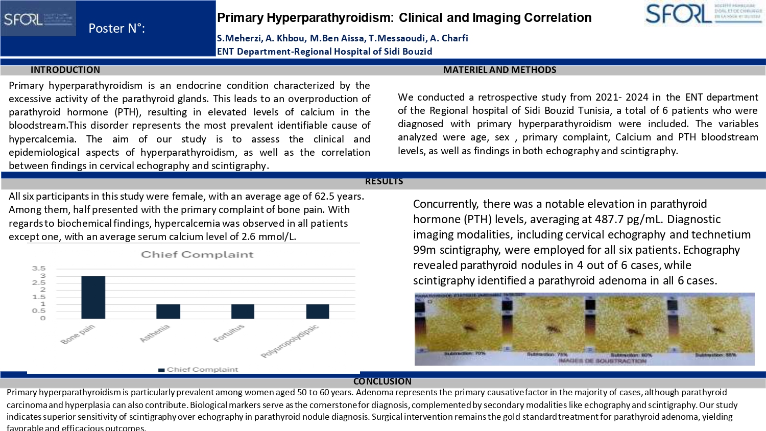 | PC006 – Prise en charge de « l’osteitis fibrosa cystica » chez une patiente porteuse d’un hyperparathyroidie secondaire | Chirurgie cervico-faciale et Cancérologie | chirurgie-cervico-faciale-et-cancerologie | |