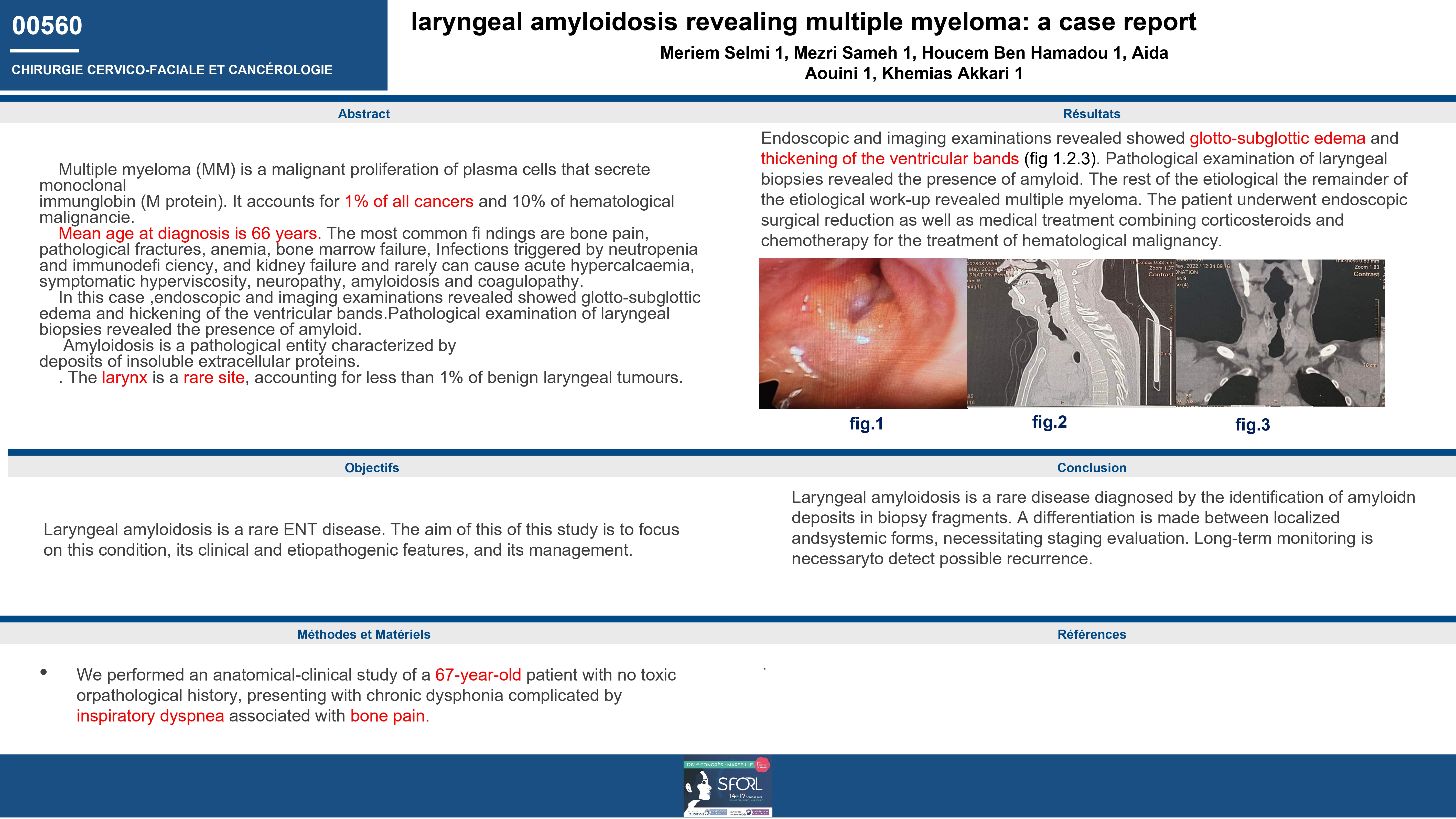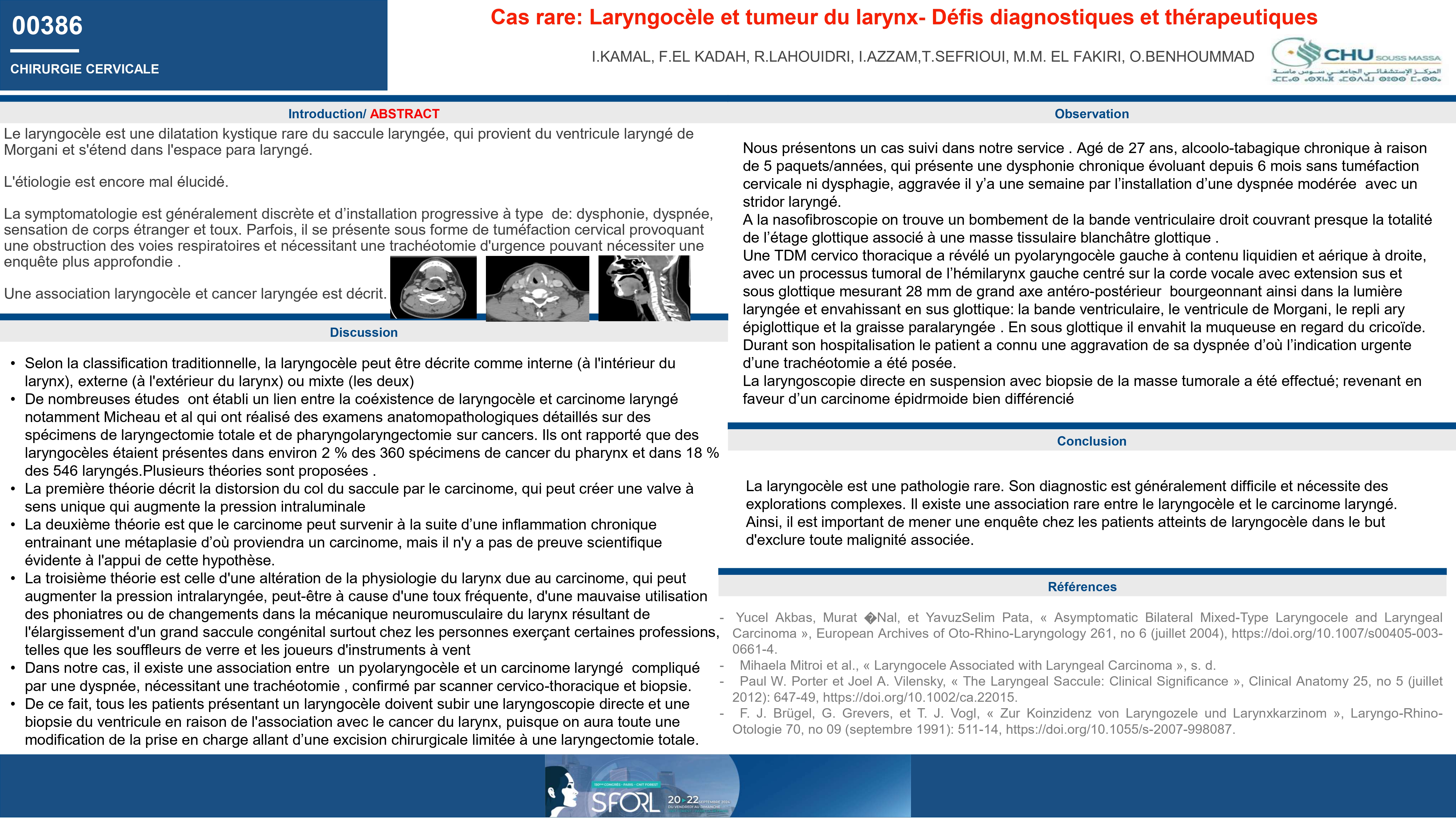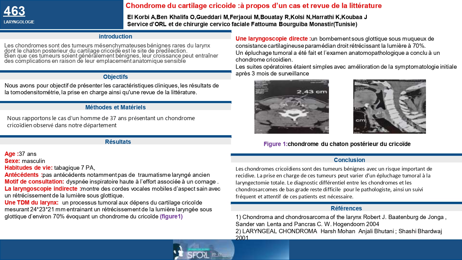 | PC025 – Chondrome du cartilage cricoide :à propos d’un cas et revue de la littérature | Laryngologie et Phoniatrie | laryngologie-et-phoniatrie | |