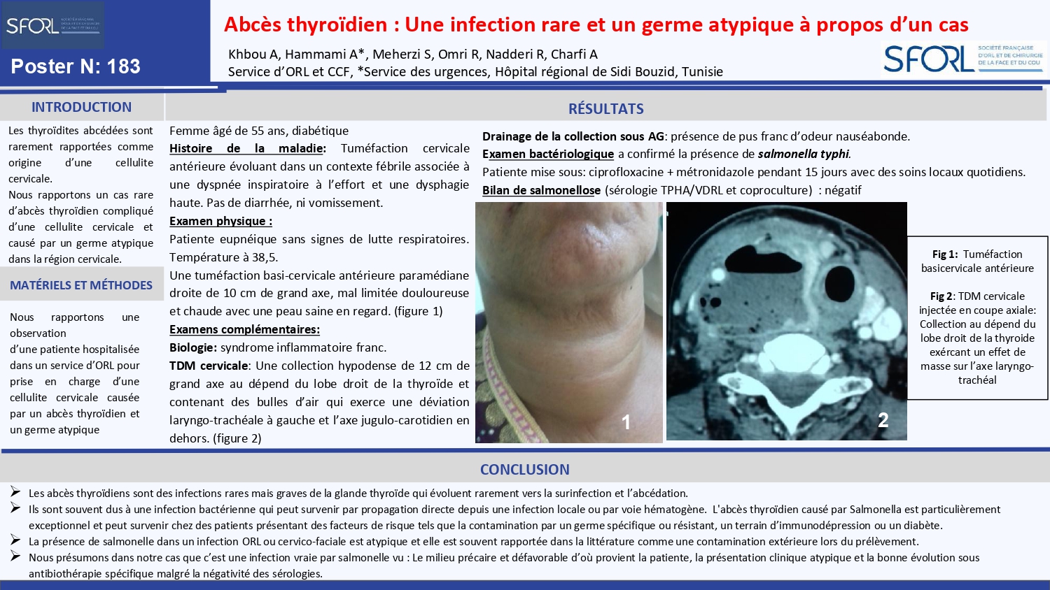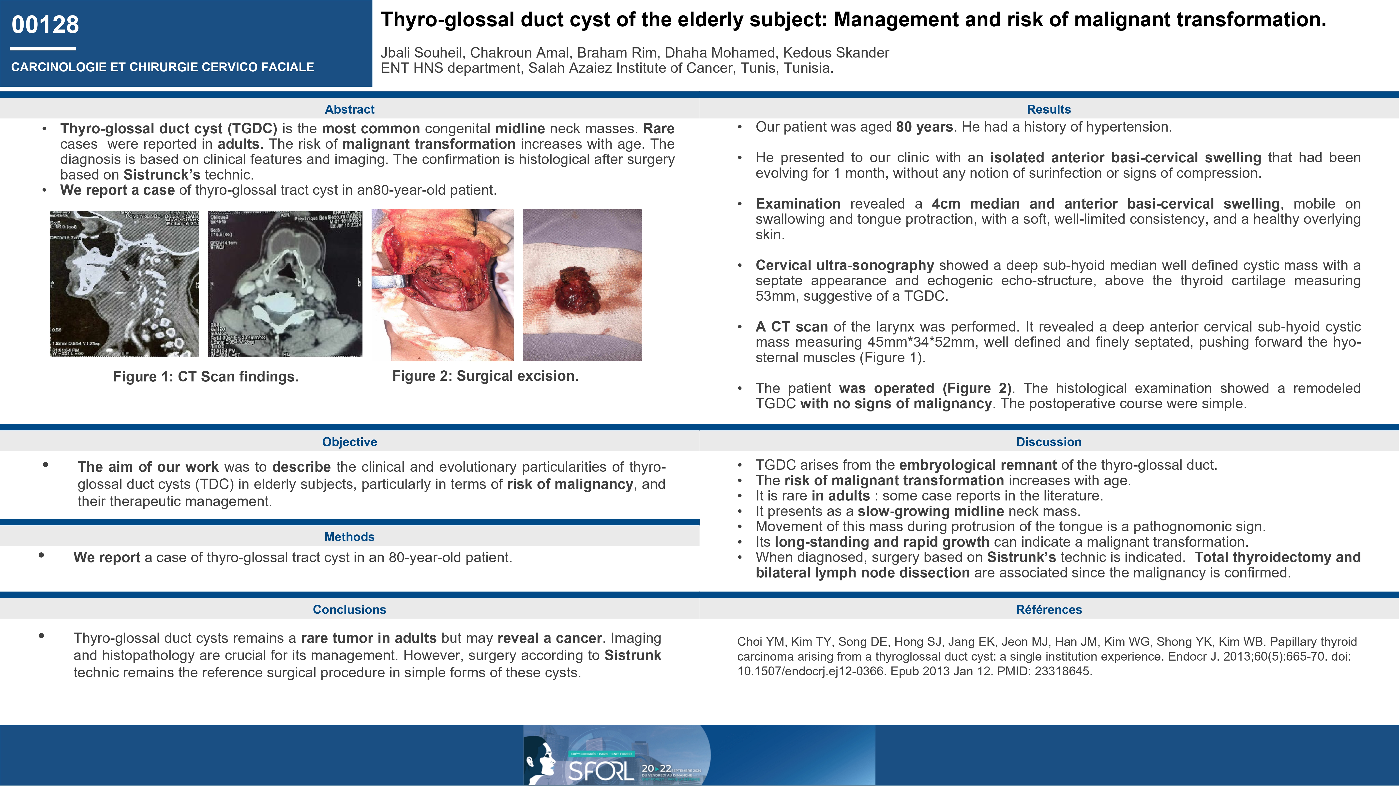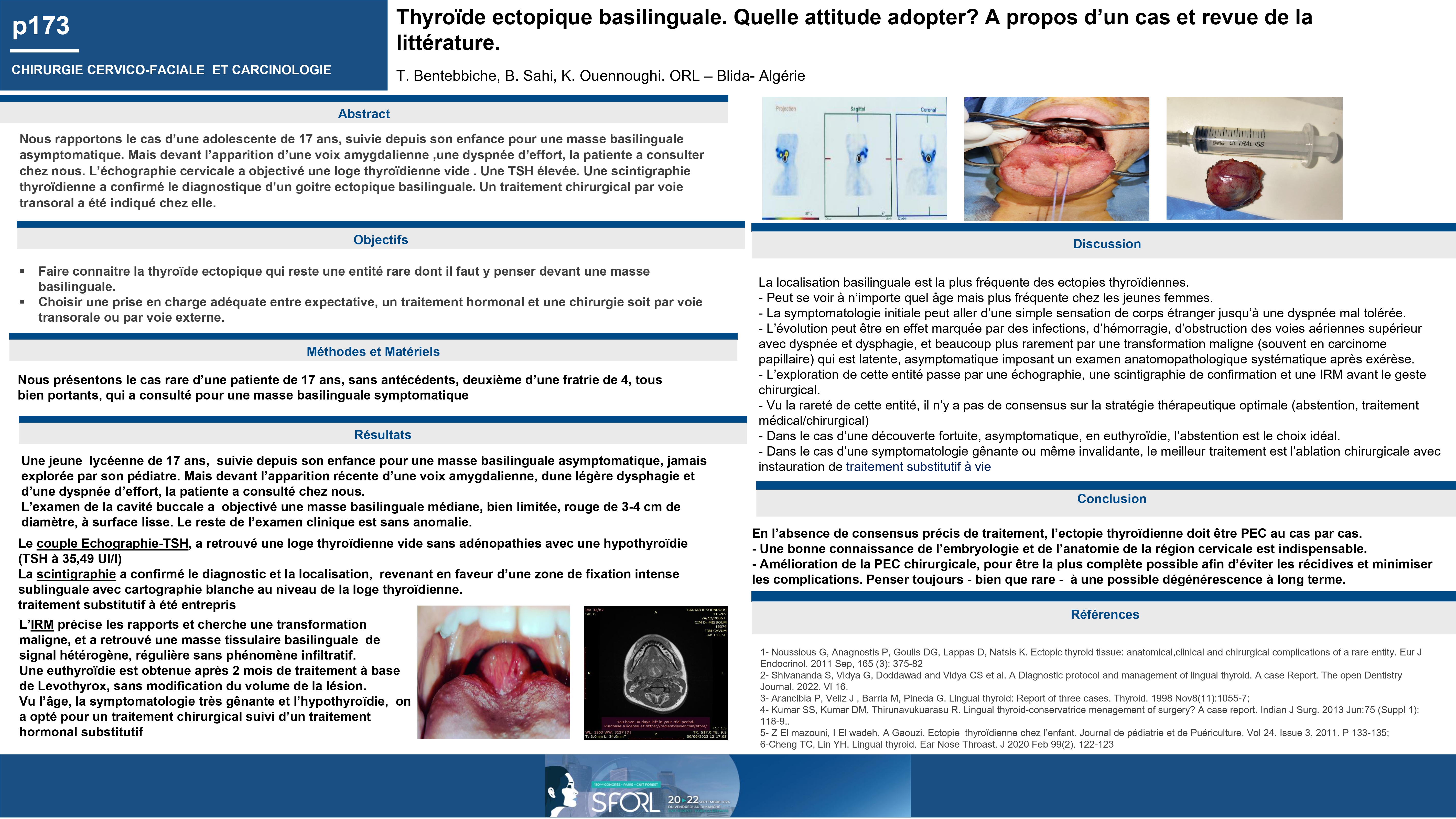 | P017 – Double ectopie thyroïdienne basilinguale et cervicale haute à propos d’un cas | Chirurgie cervico-faciale et Cancérologie | chirurgie-cervico-faciale-et-cancerologie | |