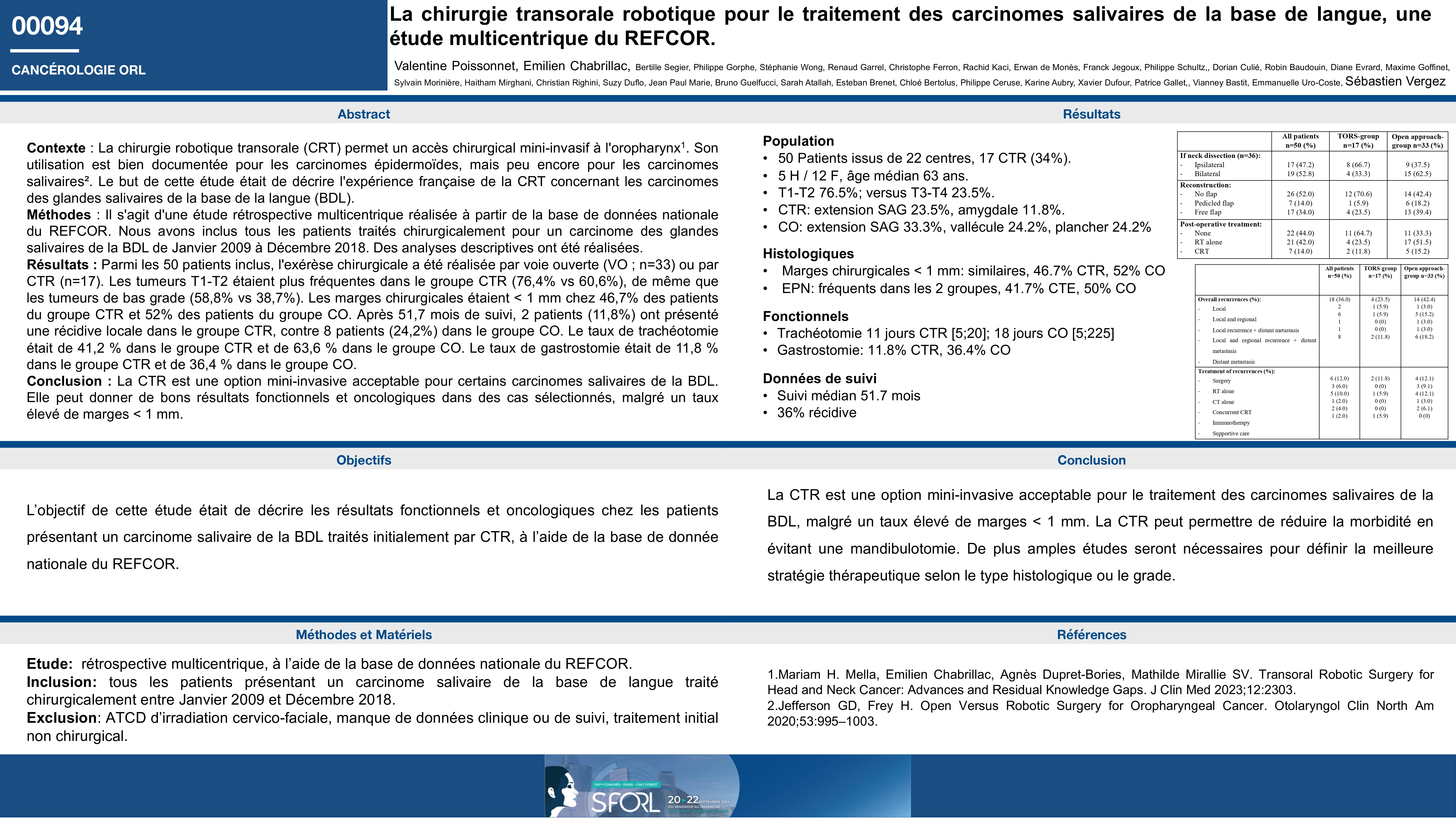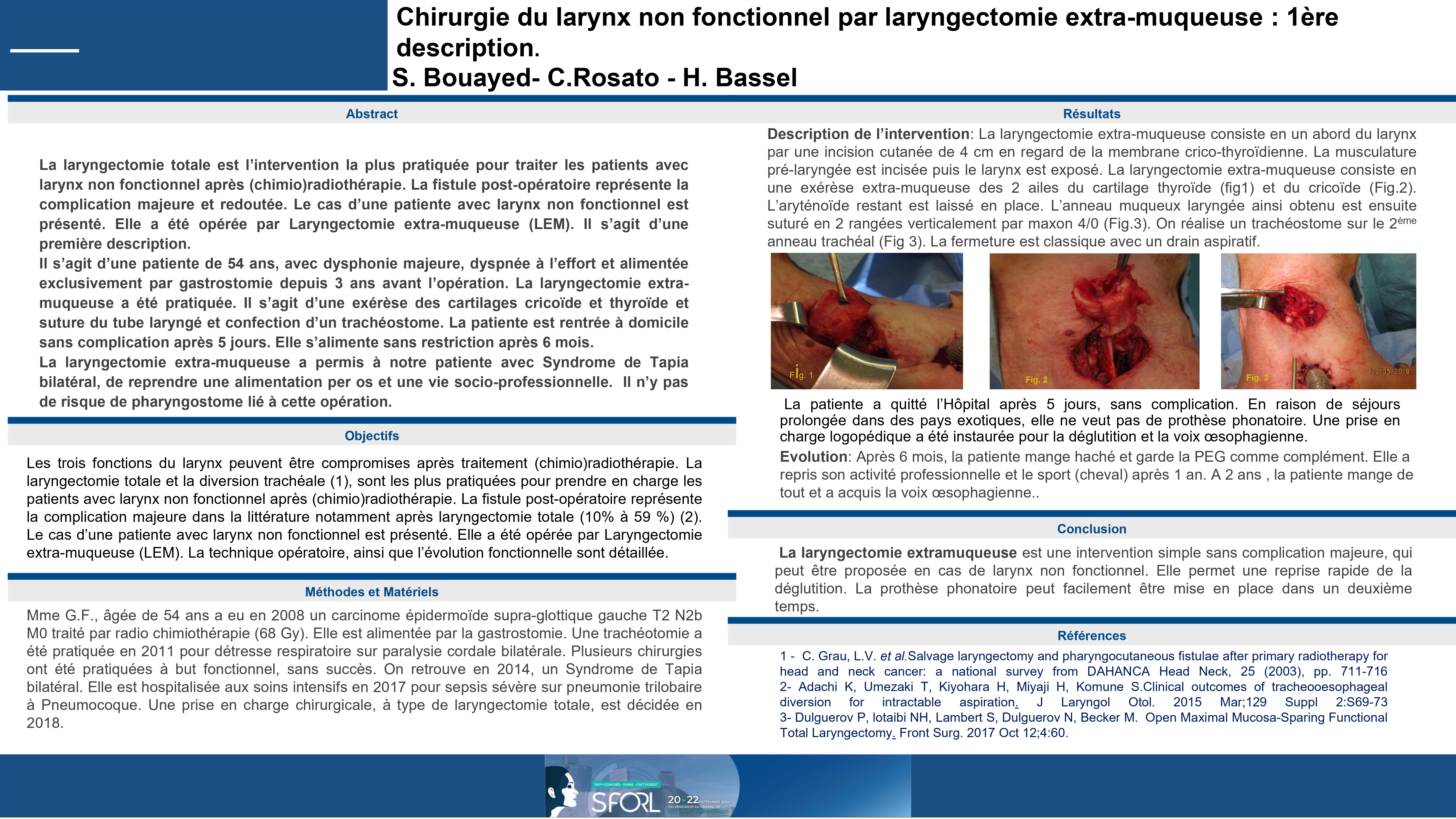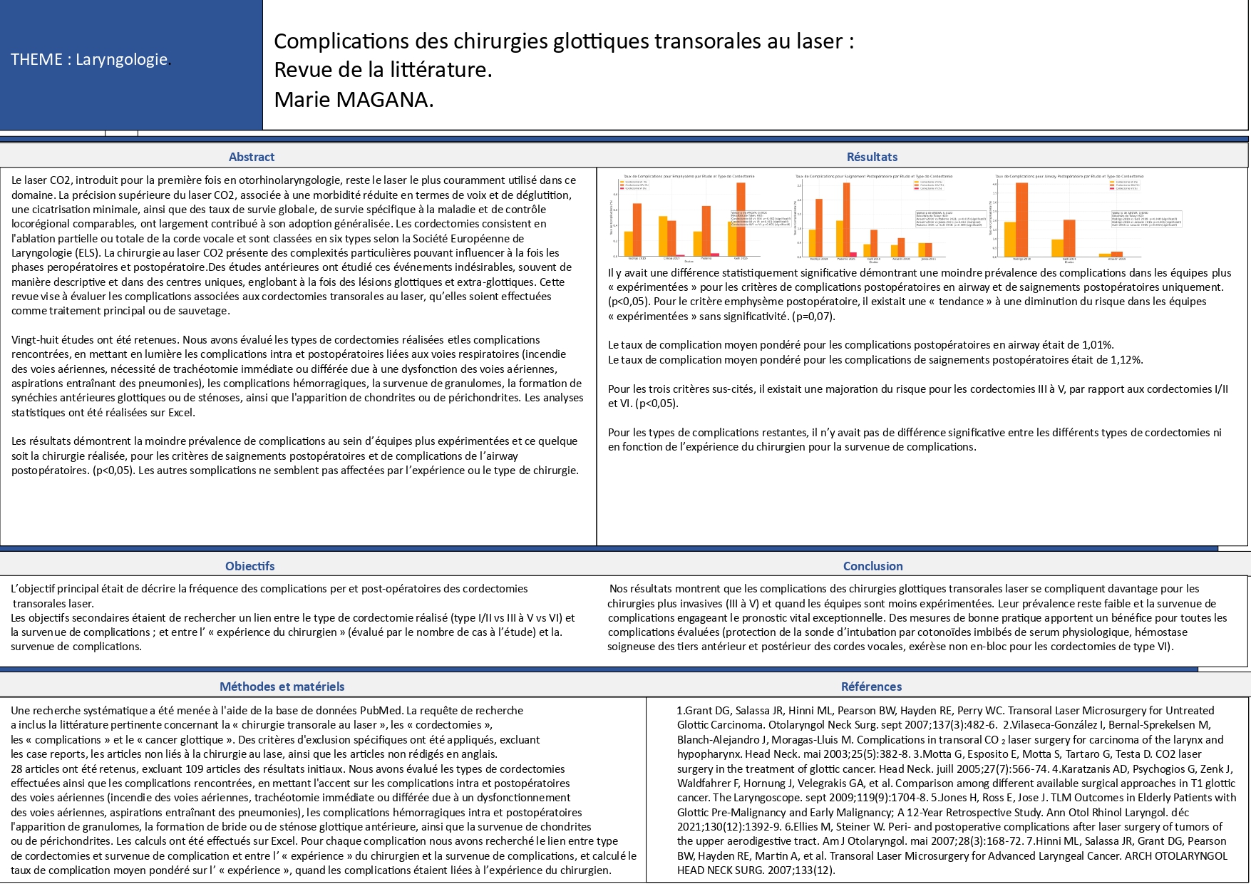 | PC023 – Evaluation des complications des chirurgies transorales laser glottiques : une méta-analyse. | Laryngologie et Phoniatrie | laryngologie-et-phoniatrie | |