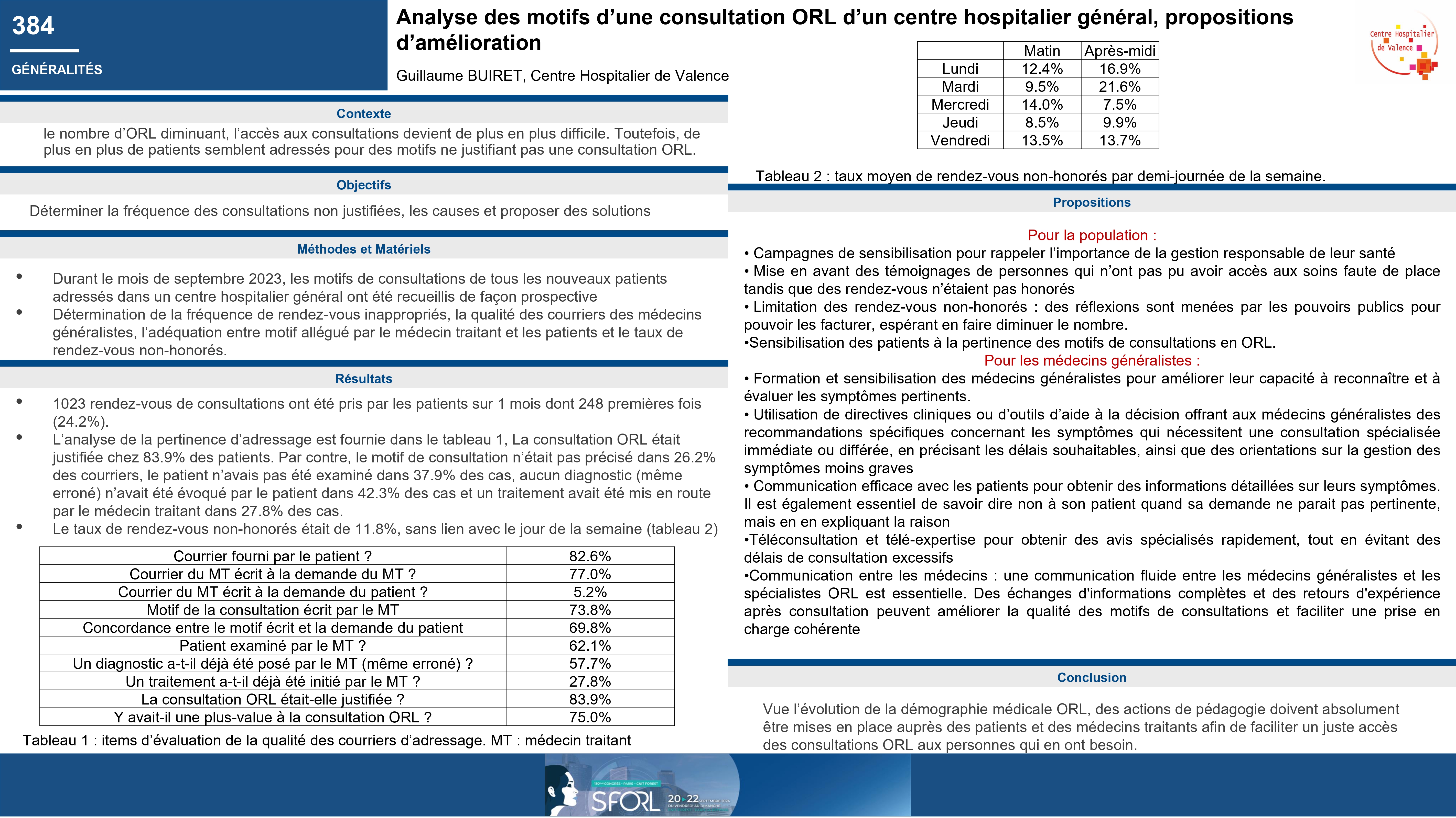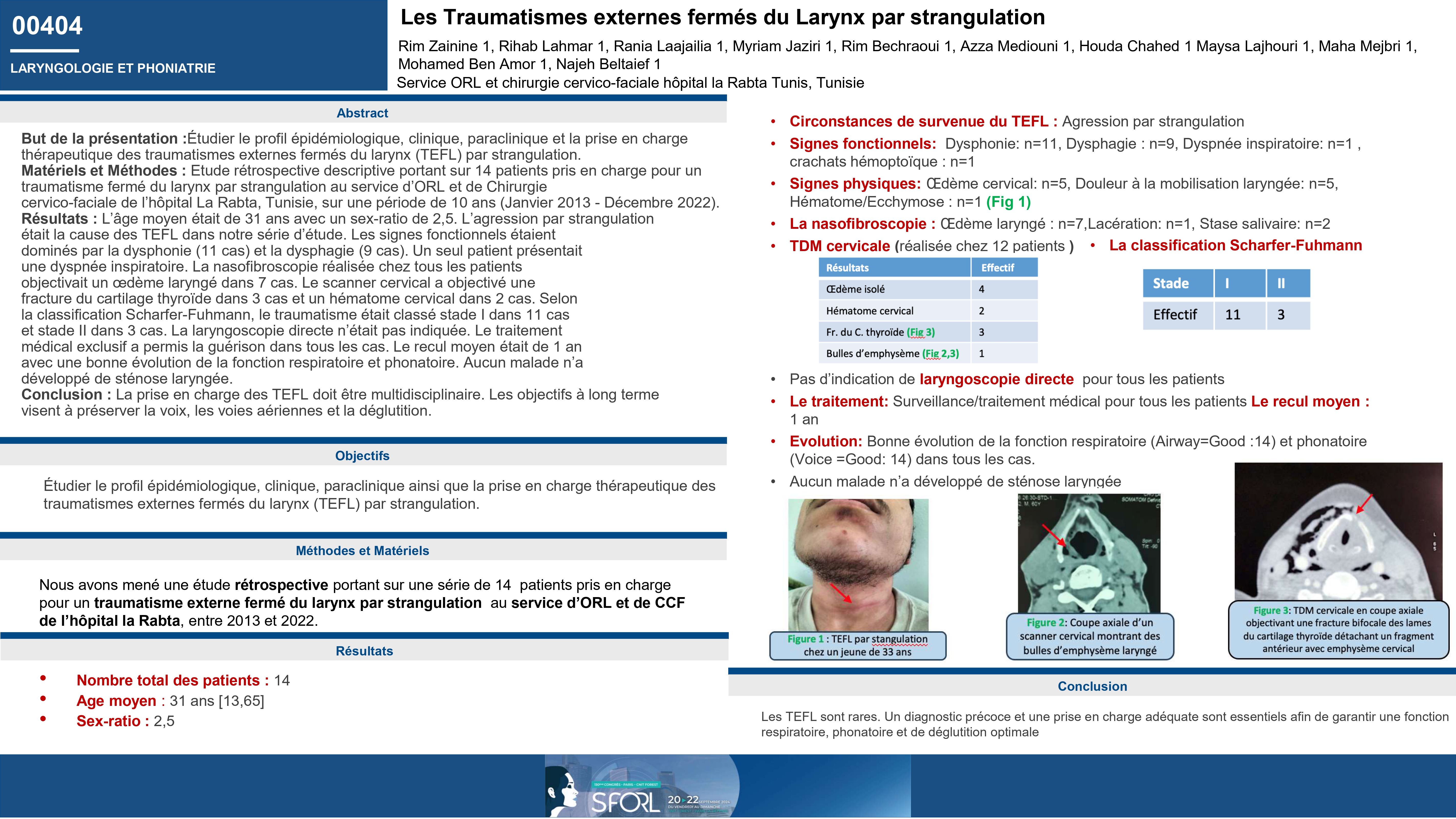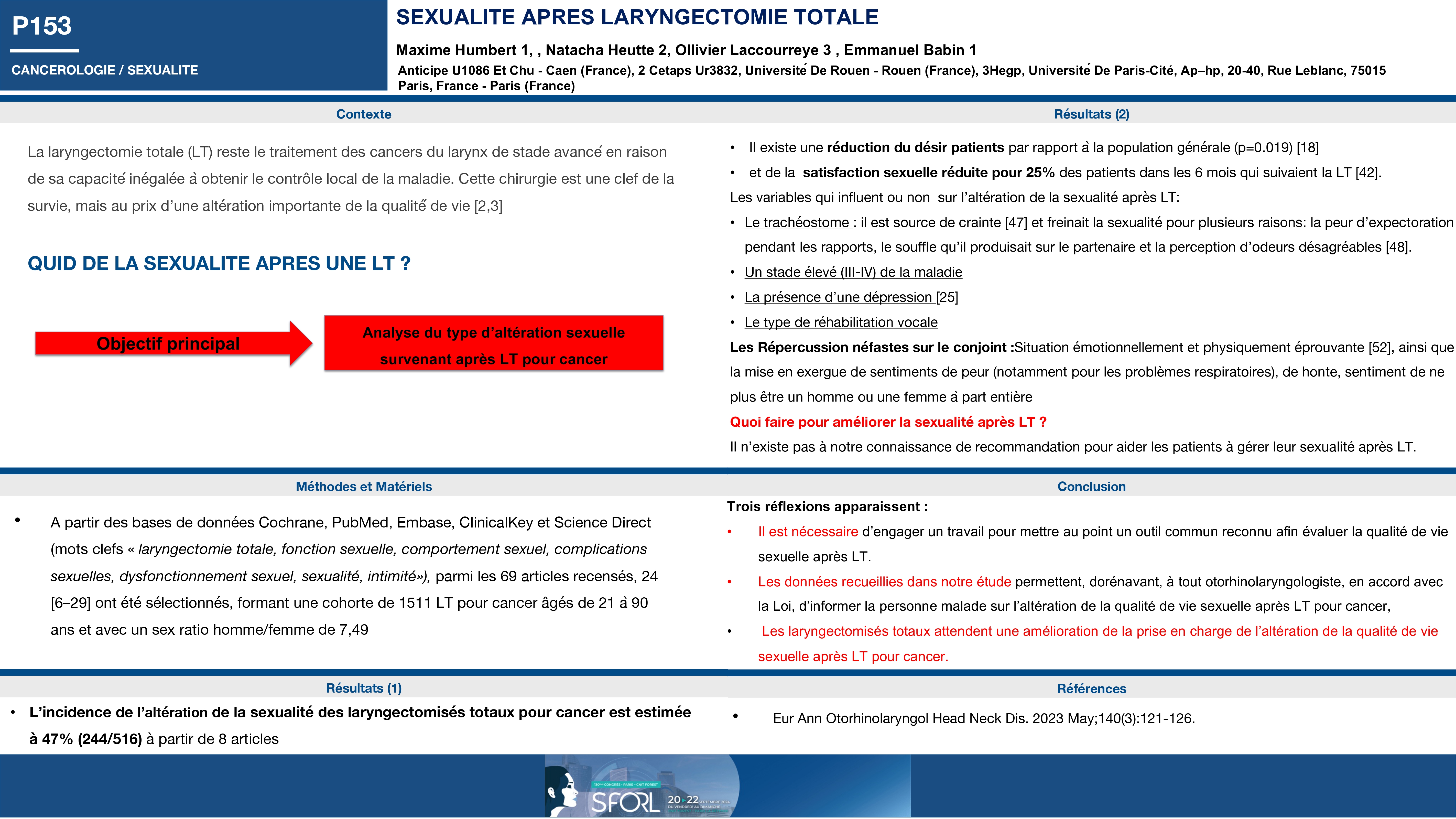 | PC023 – Evaluation des complications des chirurgies transorales laser glottiques : une méta-analyse. | Laryngologie et Phoniatrie | laryngologie-et-phoniatrie | |