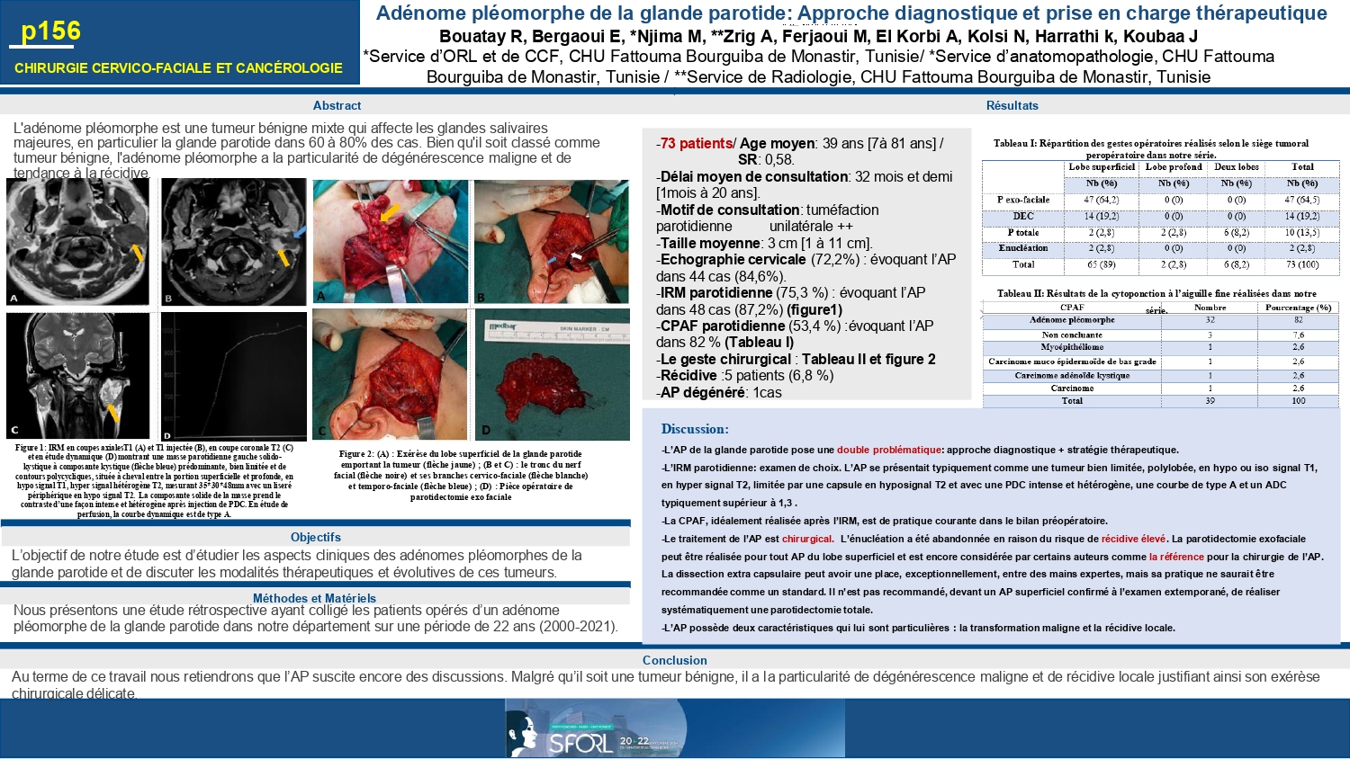 | P038 – Extra-parotid pleomorphic adenoma | Chirurgie cervico-faciale et Cancérologie | chirurgie-cervico-faciale-et-cancerologie | |