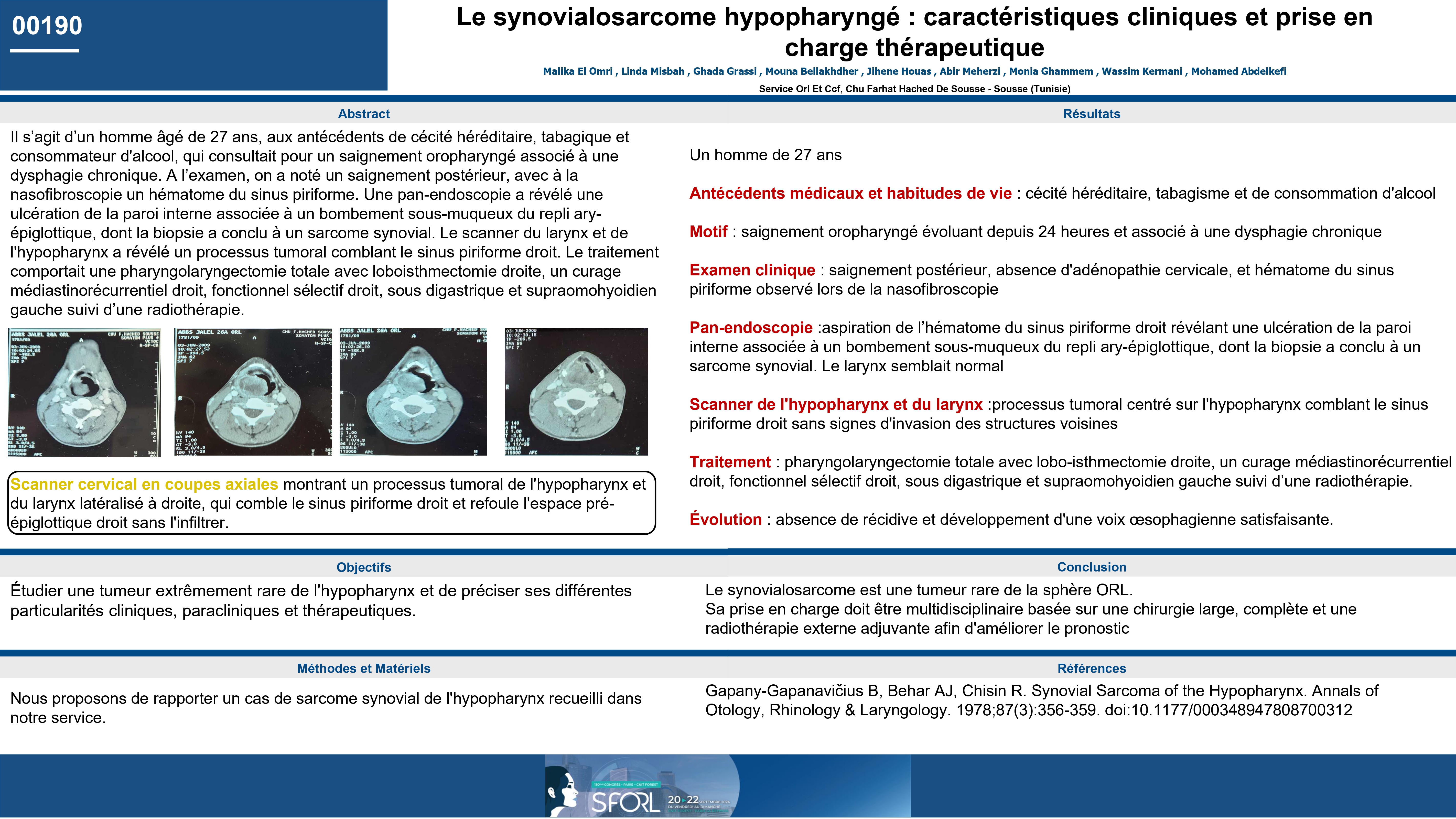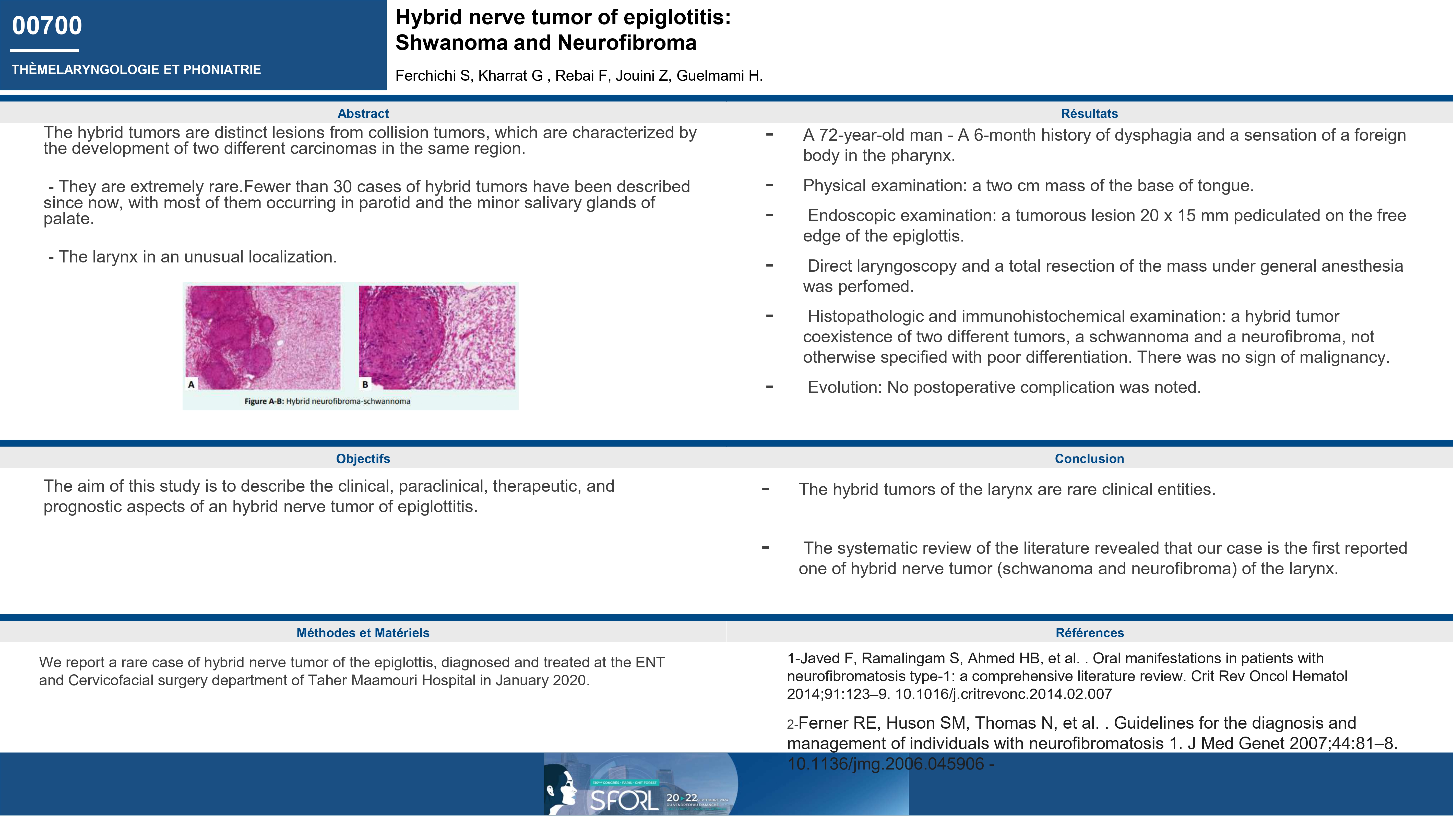 | PC026 – Hybrid nerve tumor of the epiglotitis (schwanoma and neurofibroma | Laryngologie et Phoniatrie | laryngologie-et-phoniatrie | |
