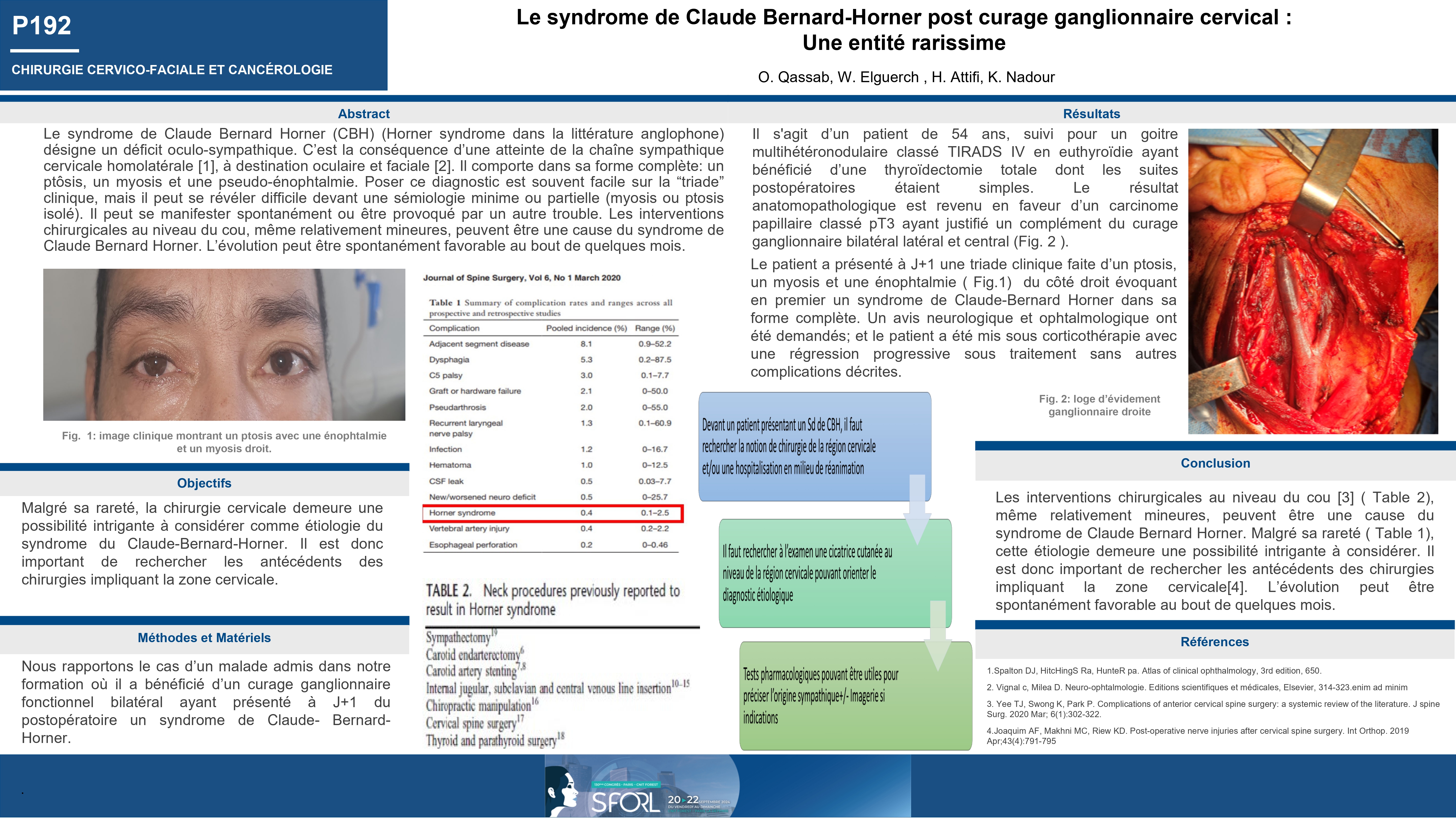 | P025 – Syndrome de Garcin révélant un cancer du sein: a propos d’un cas. | Chirurgie cervico-faciale et Cancérologie | chirurgie-cervico-faciale-et-cancerologie | |