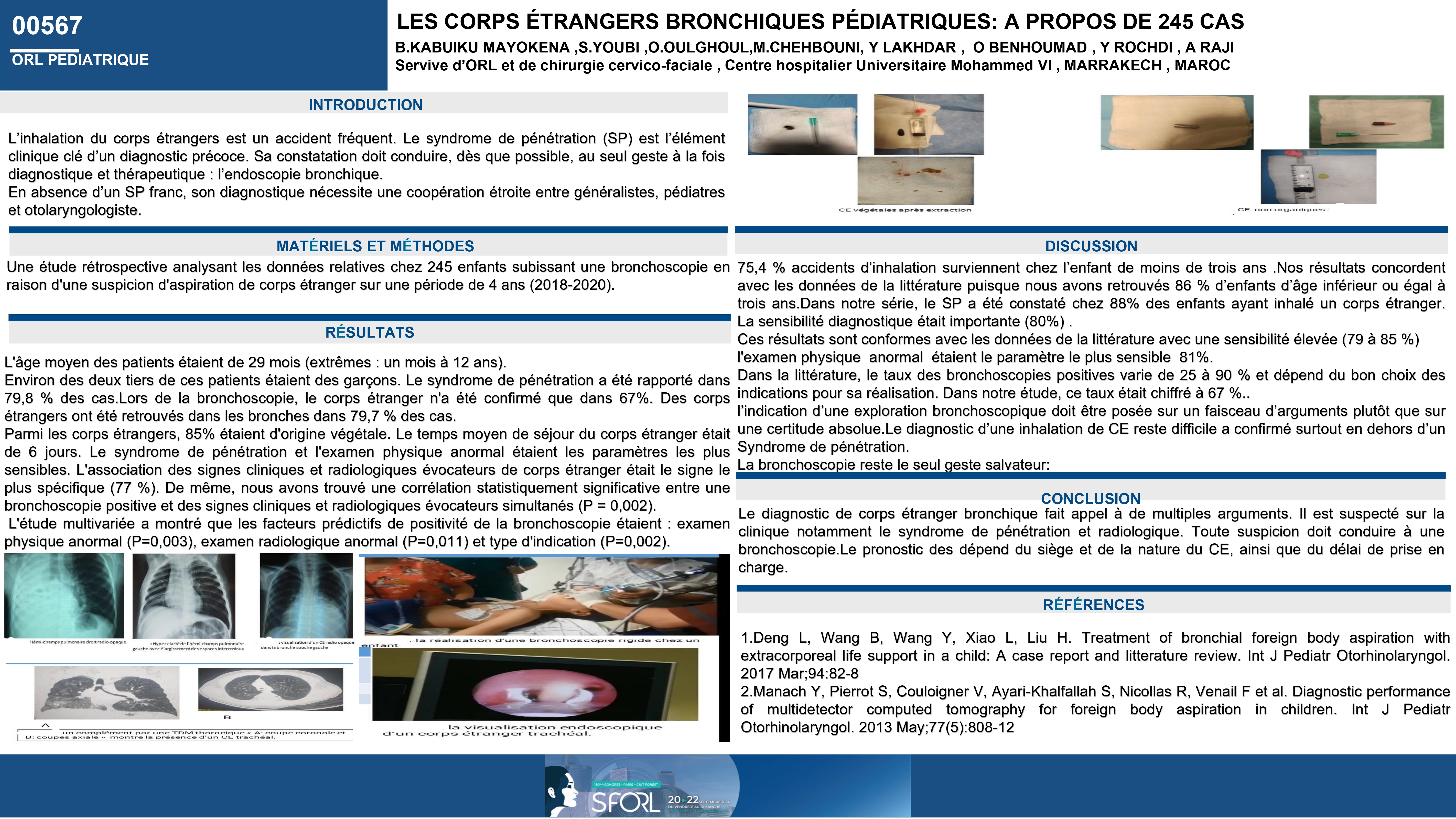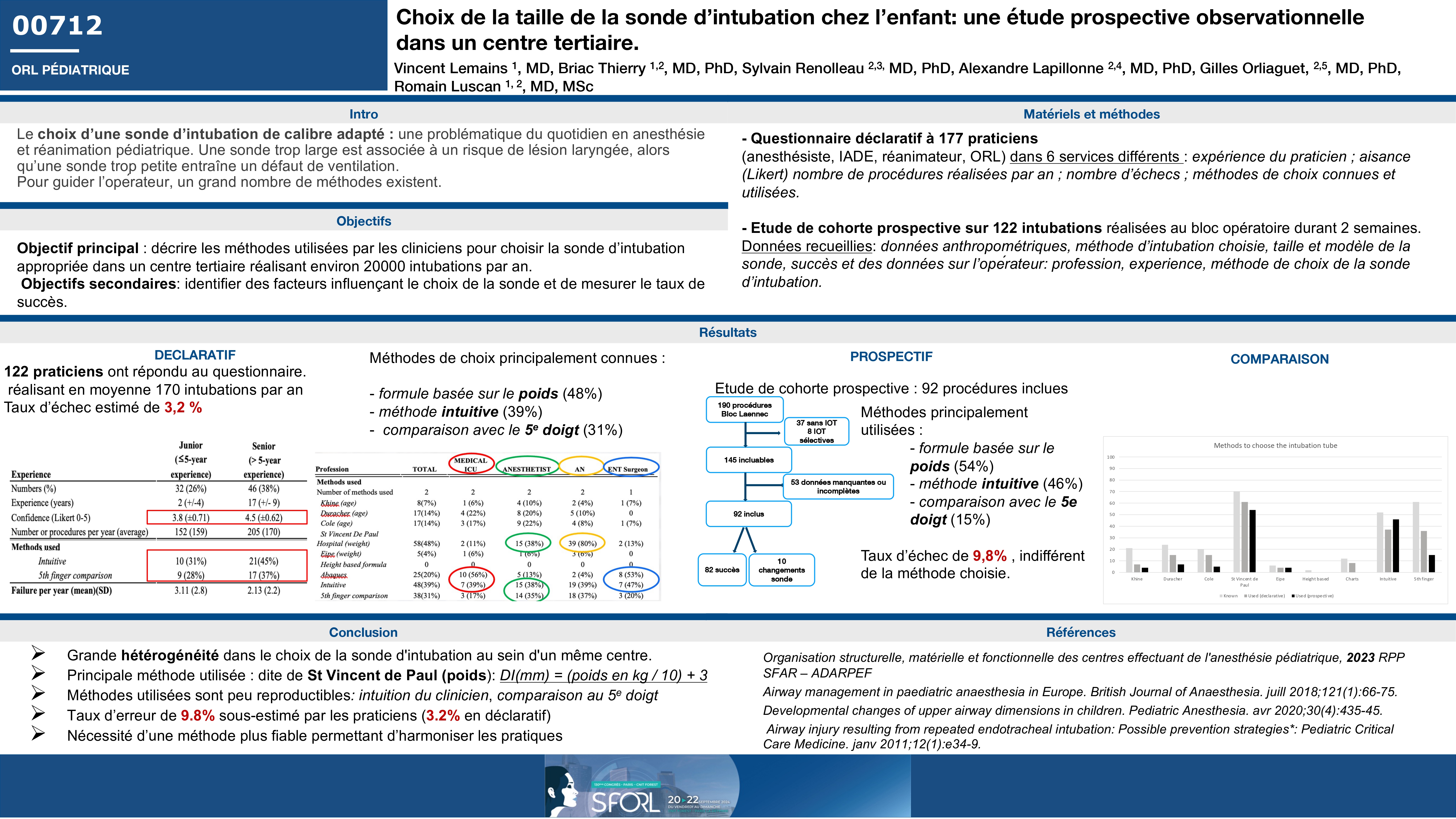 | PC030 – Choix de la taille de la sonde d’intubation chez l’enfant: une étude prospective observationnelle dans un centre tertiaire. | ORL Pédiatrique | orl-pediatrique | |