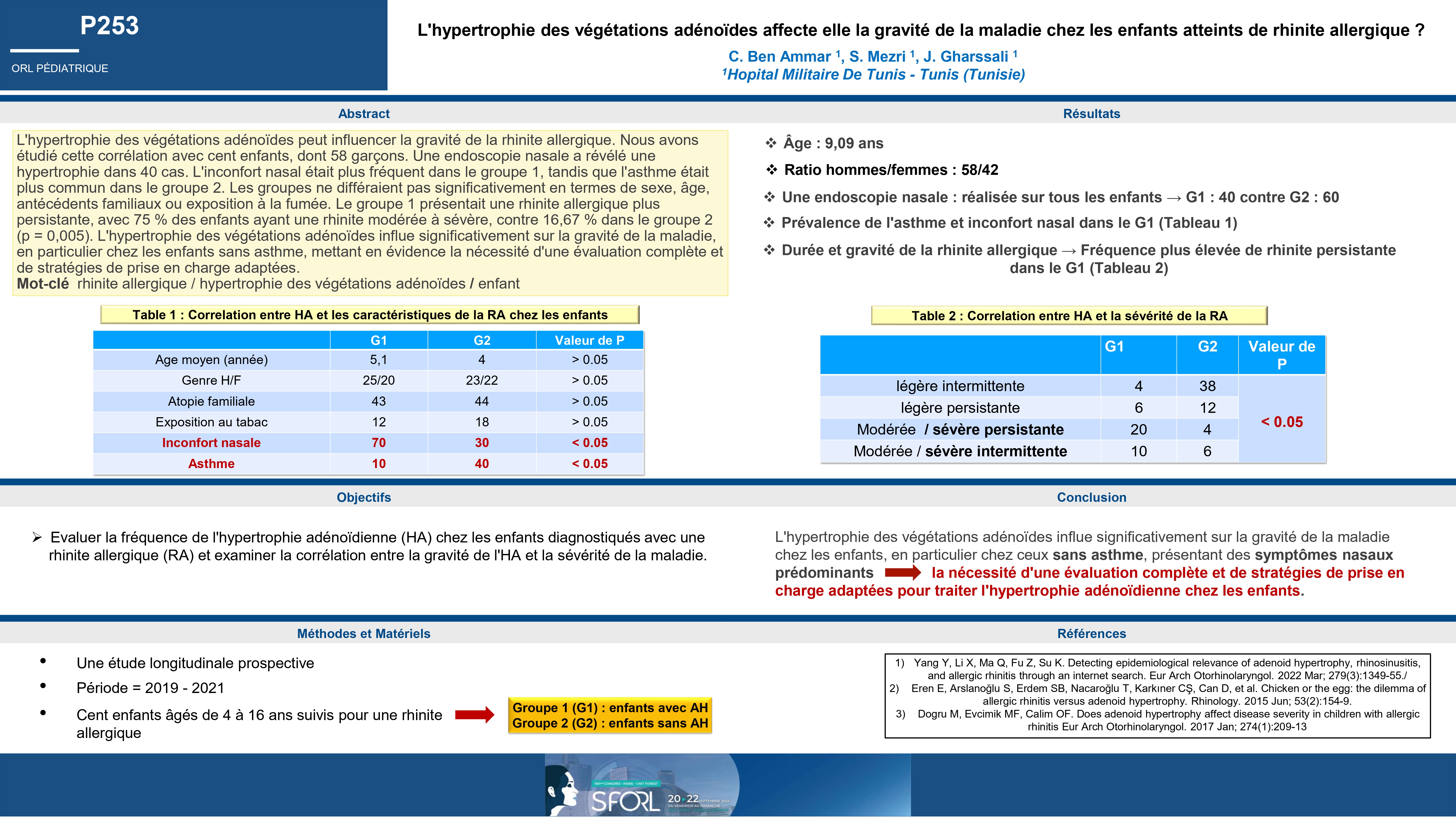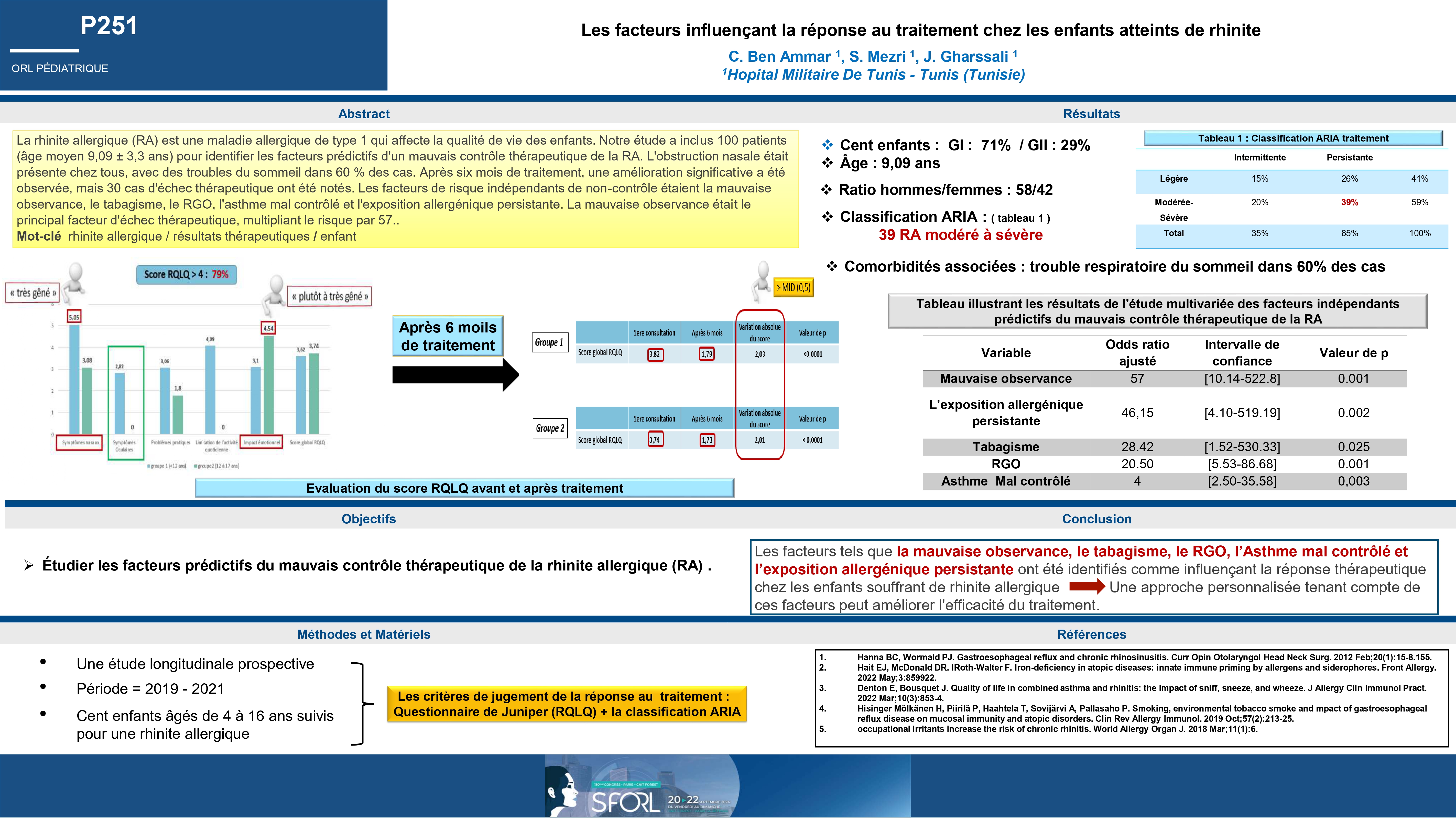 | PC036 – Les facteurs influençant la réponse au traitement chez les enfants atteints de rhinite | ORL Pédiatrique | orl-pediatrique | |