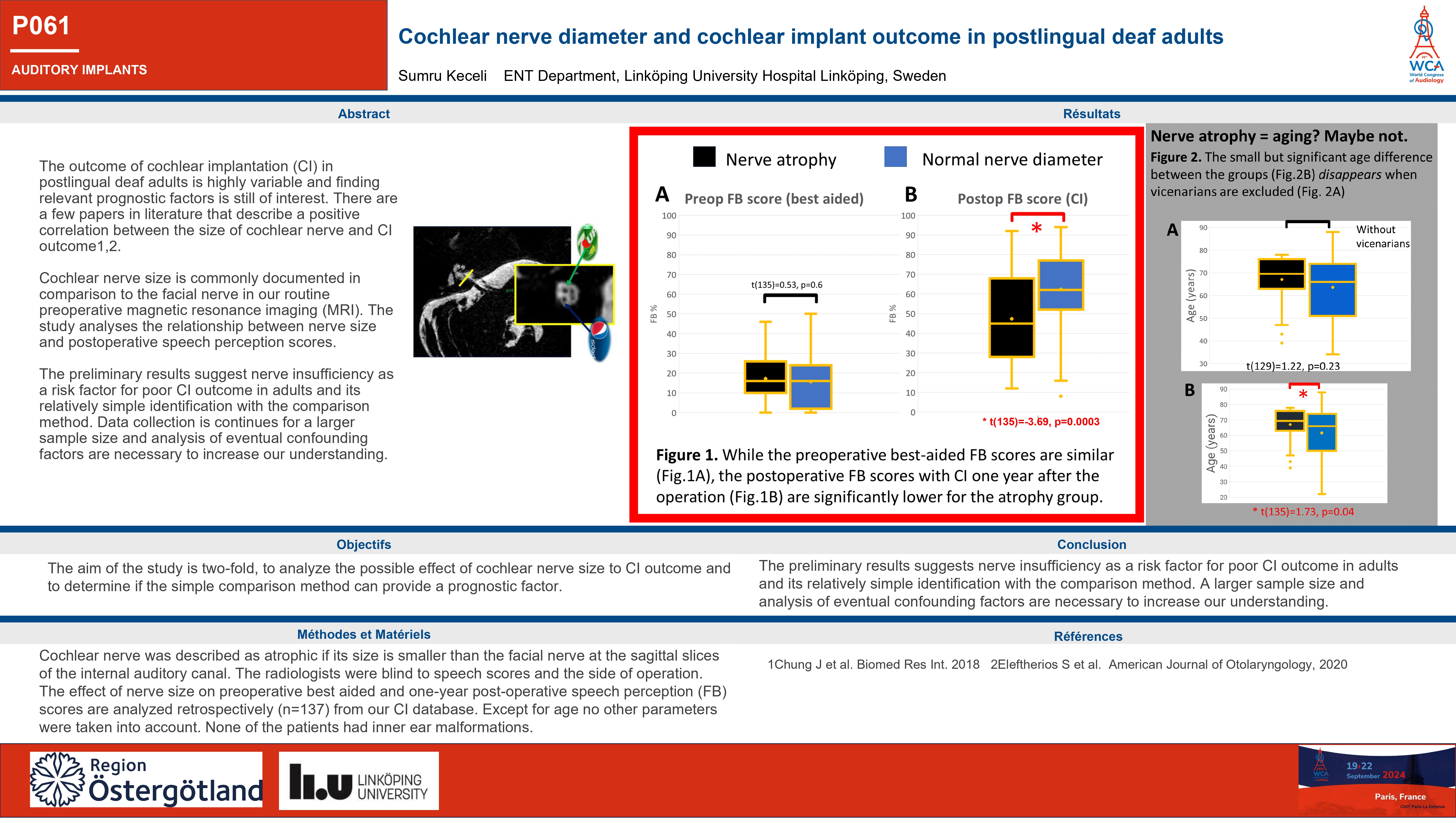| P061 – Cochlear nerve diameter and cochlear implant outcome in postlingual deaf adults | Auditory Implants | auditory-implants | |