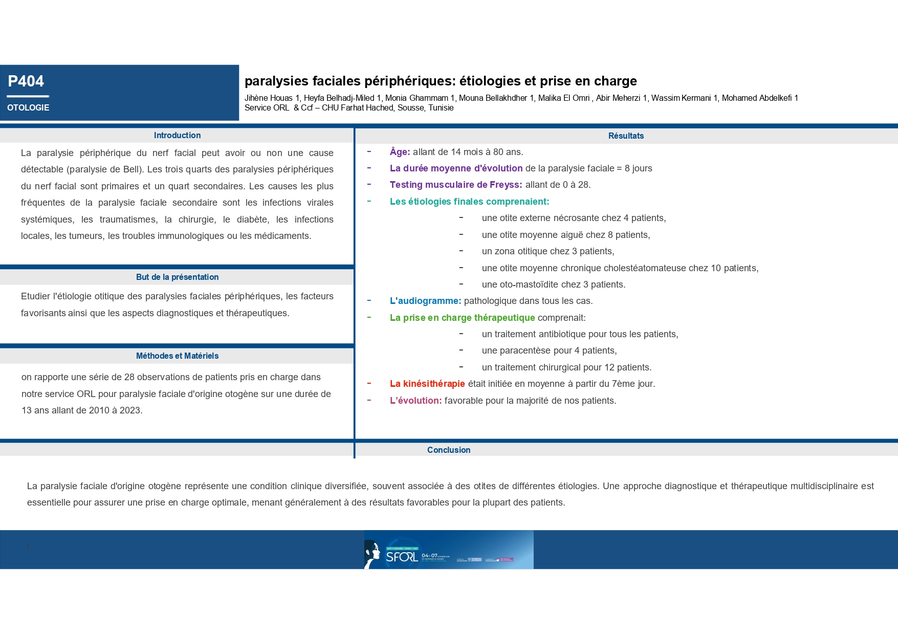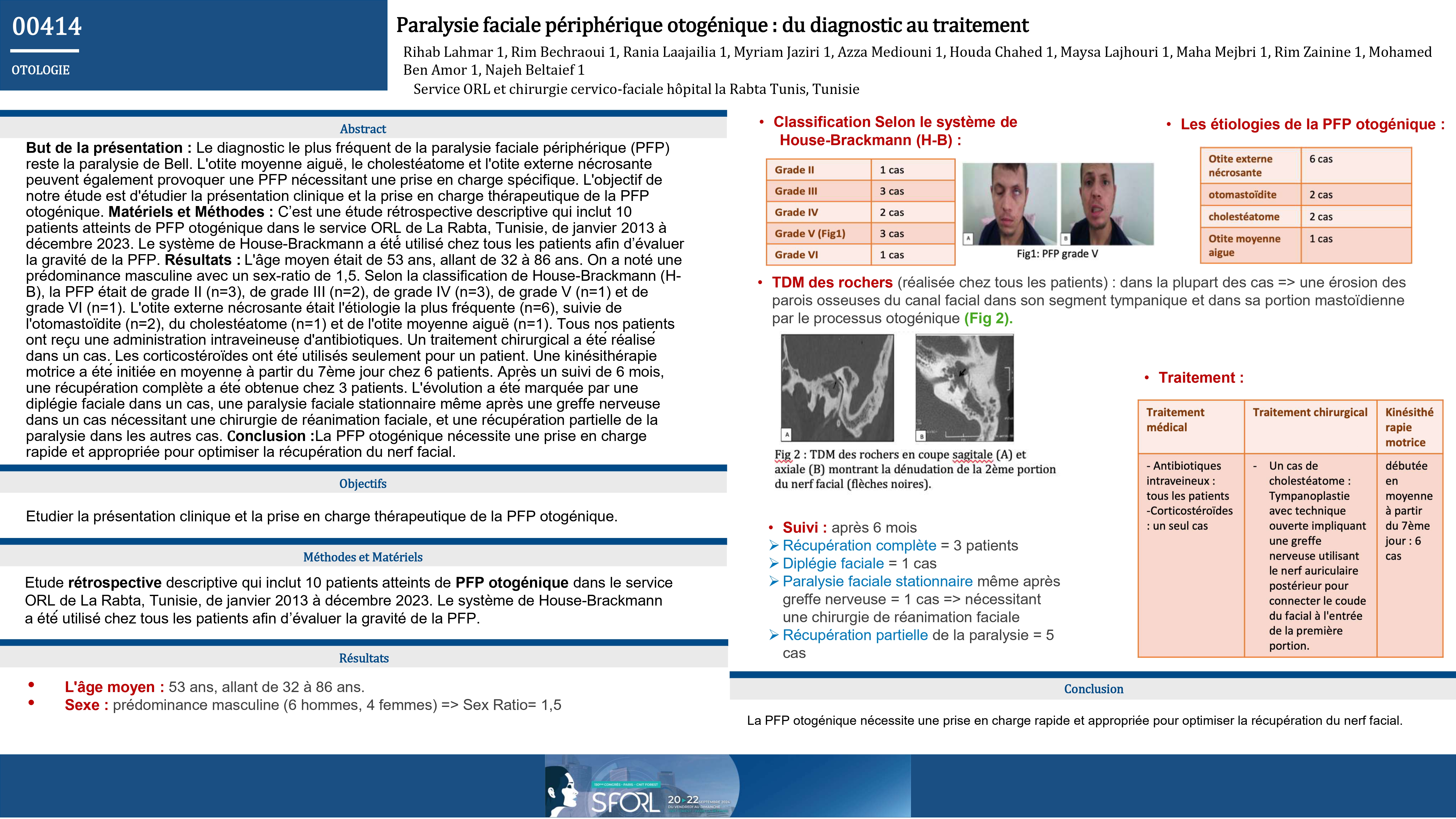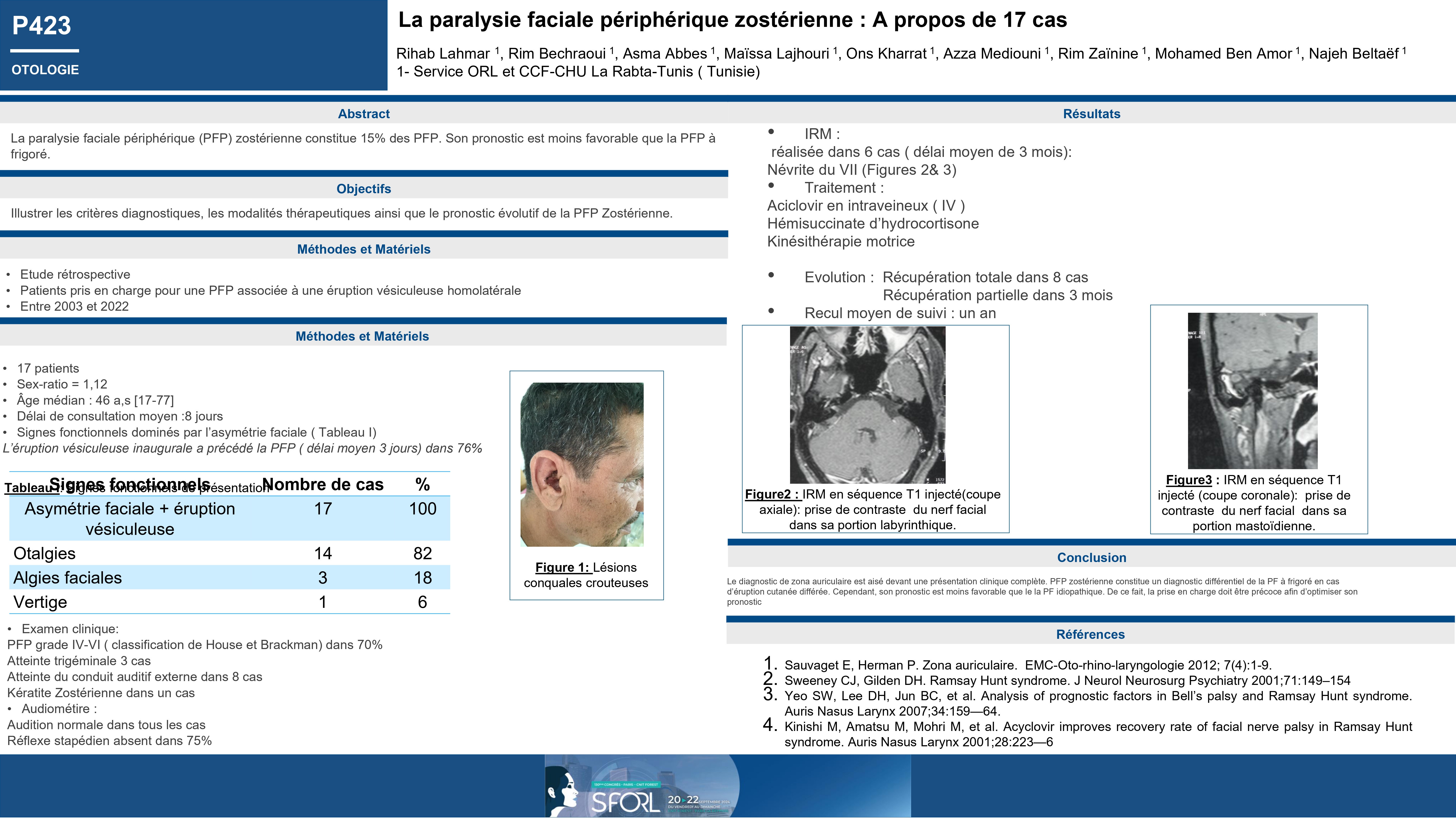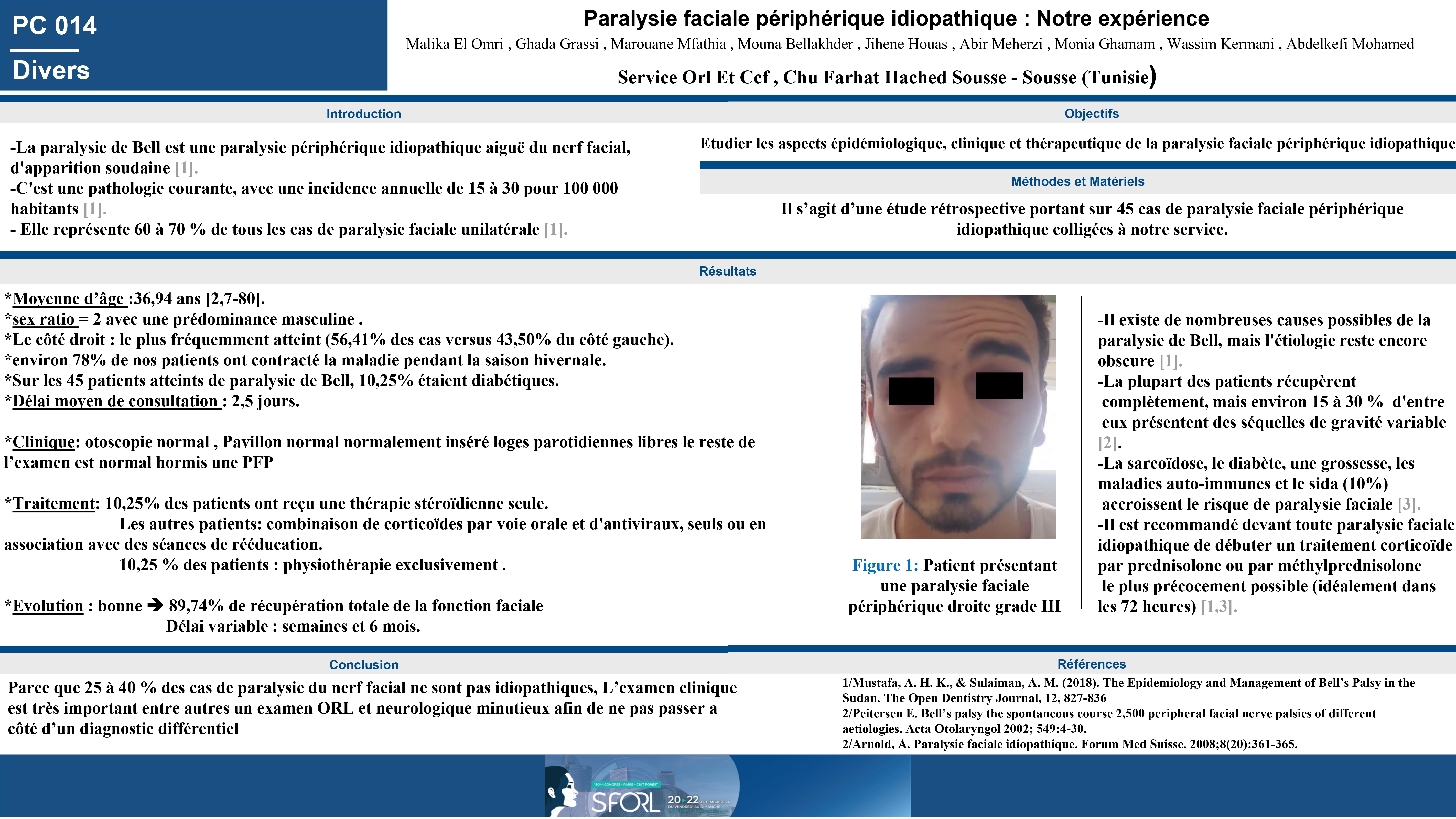 | PC014 – Paralysie faciale périphérique idiopathique : Notre expérience | Chirurgie esthétique et reconstructrice | chirurgie-esthetique-et-reconstructrice | |
