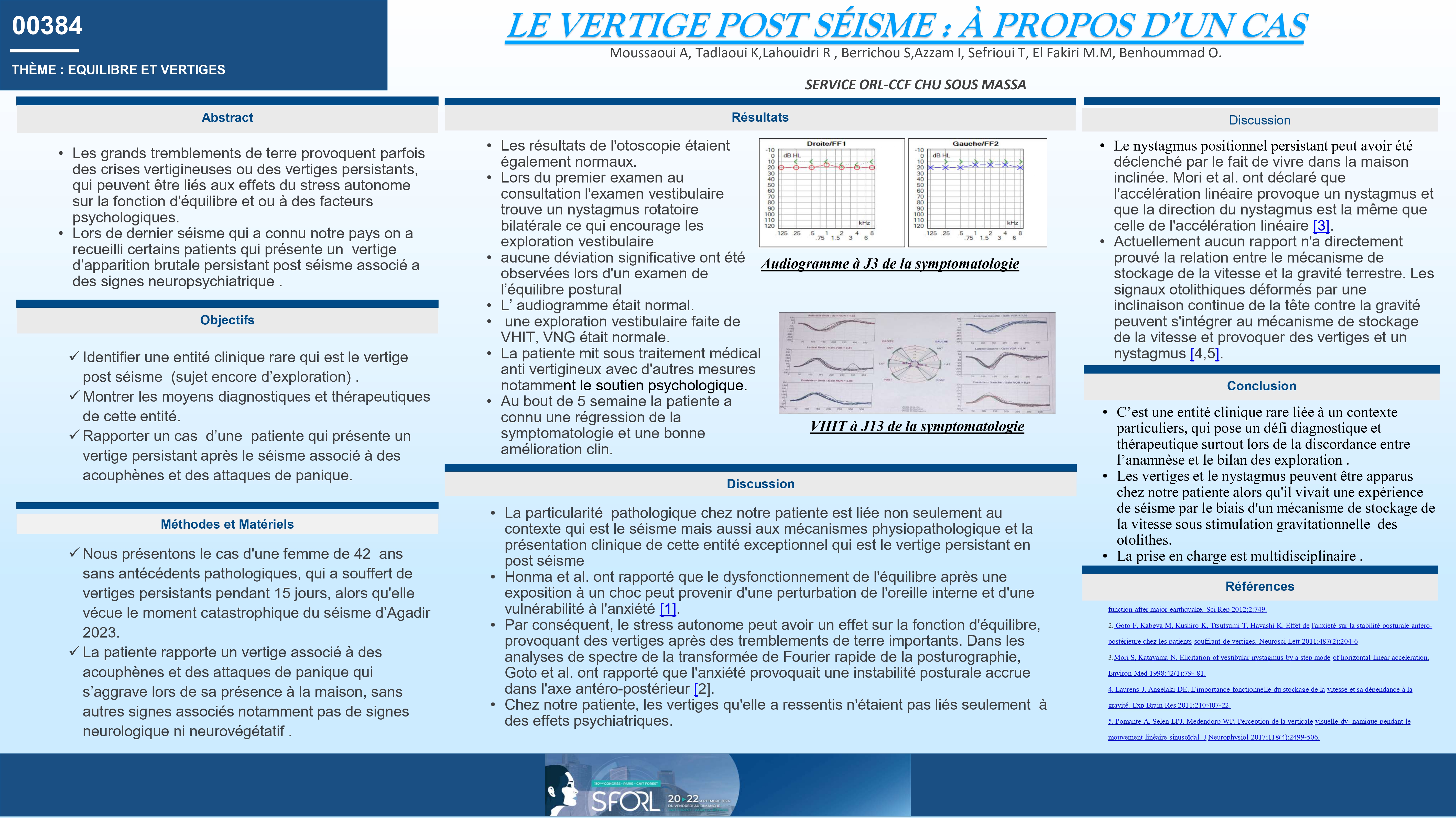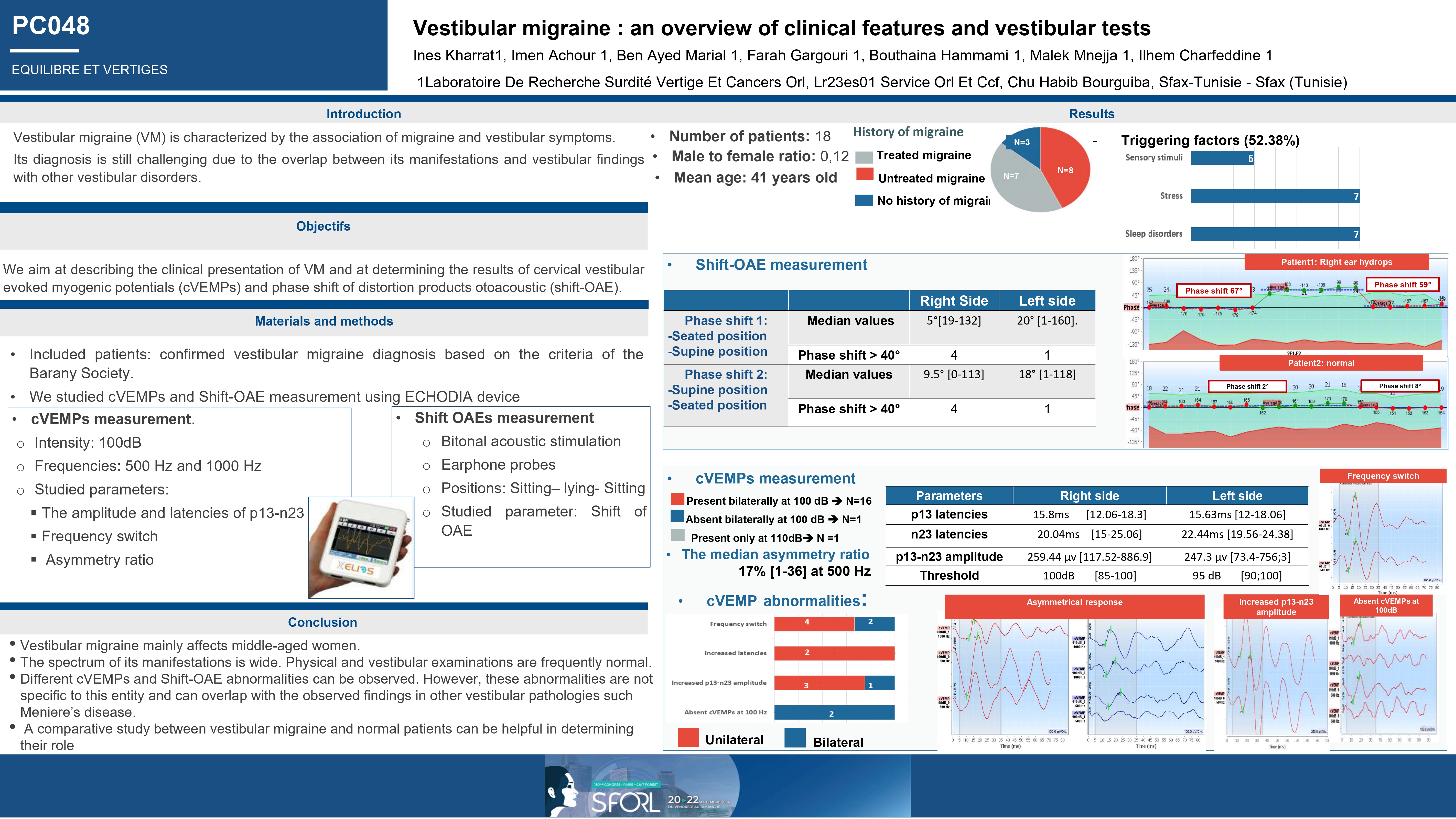 | PC048 – Vestibular migraine : an overview of clinical features and vestibular tests | Equilibre et vertiges | equilibre-et-vertiges | |