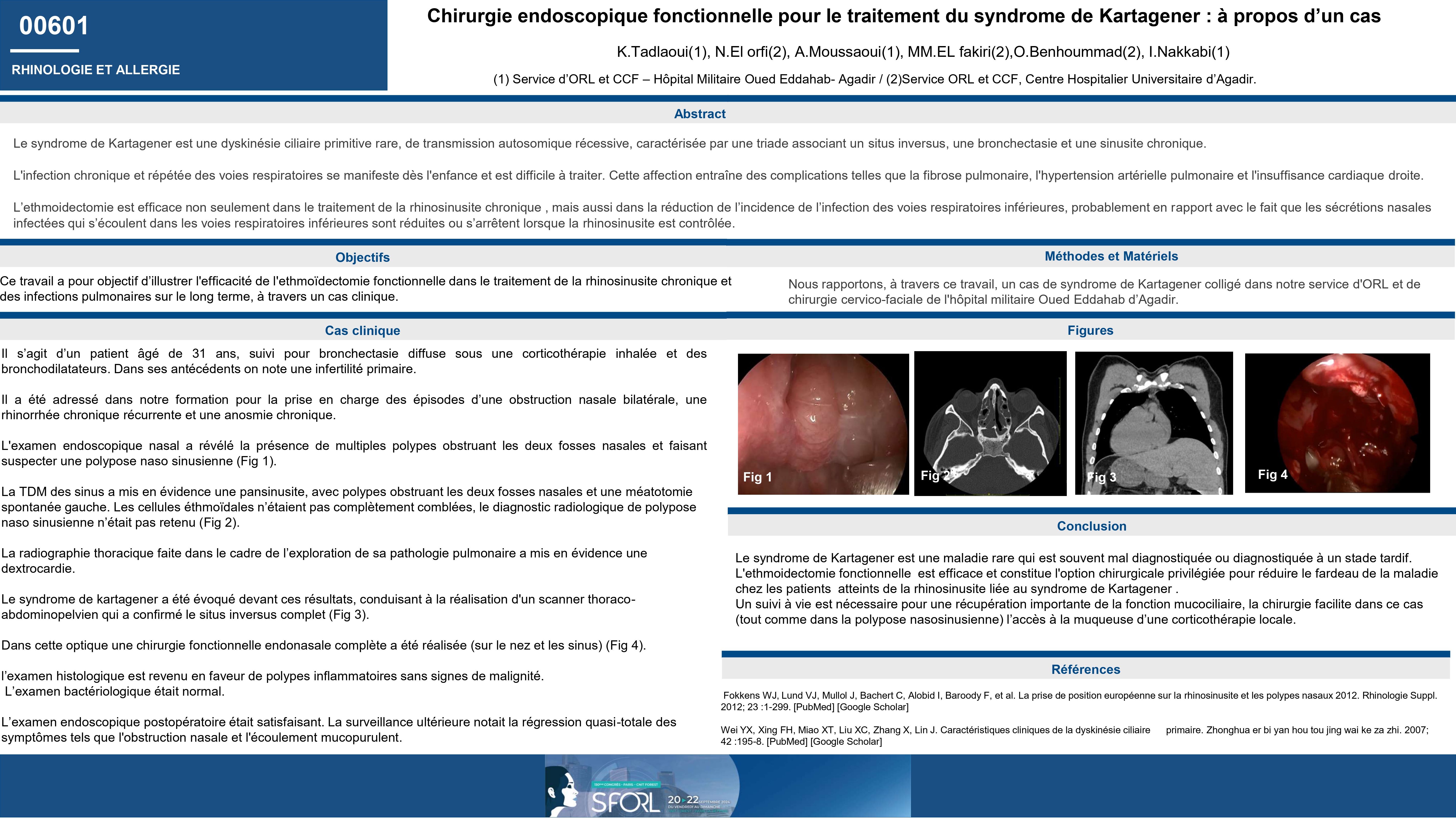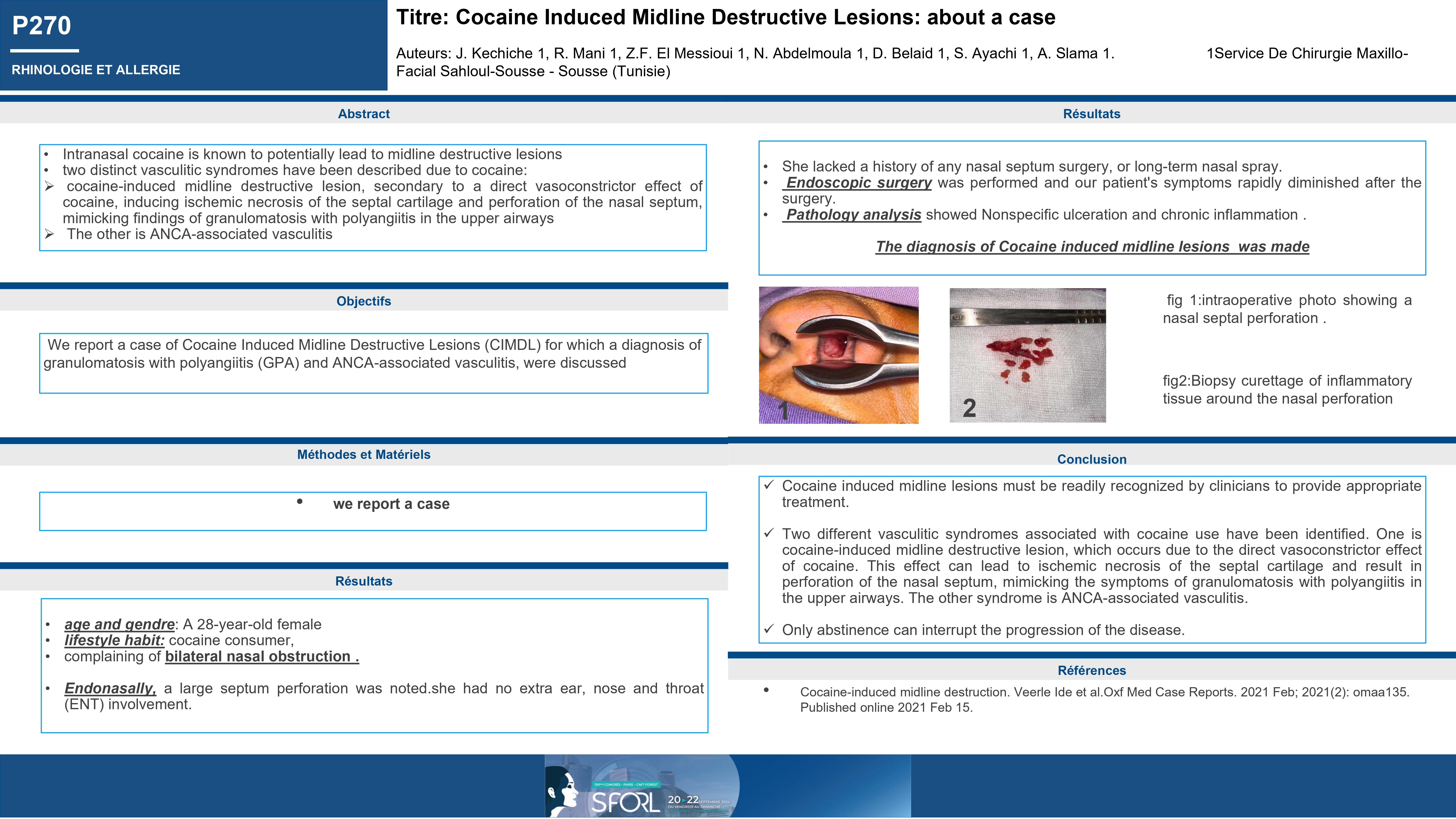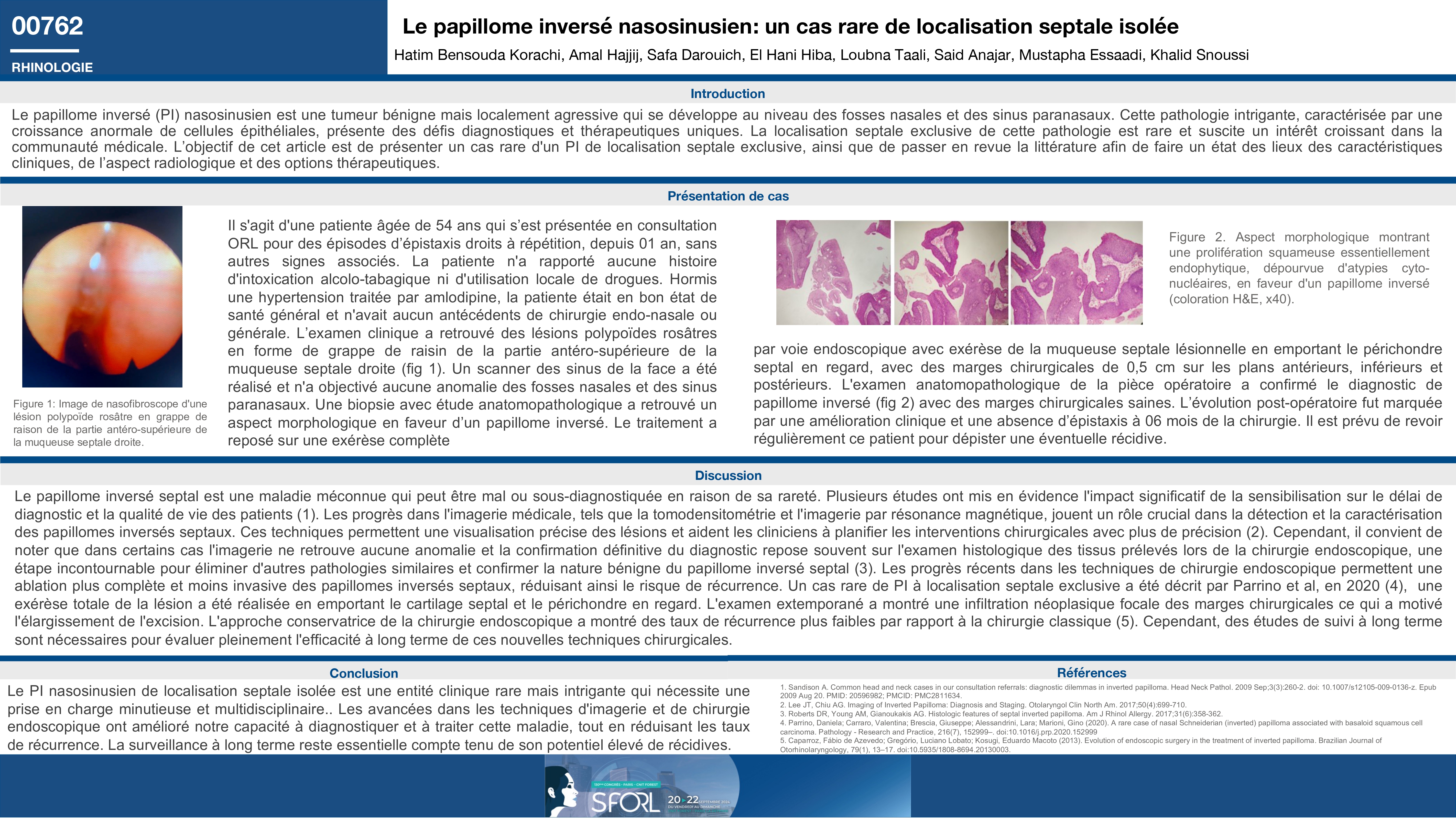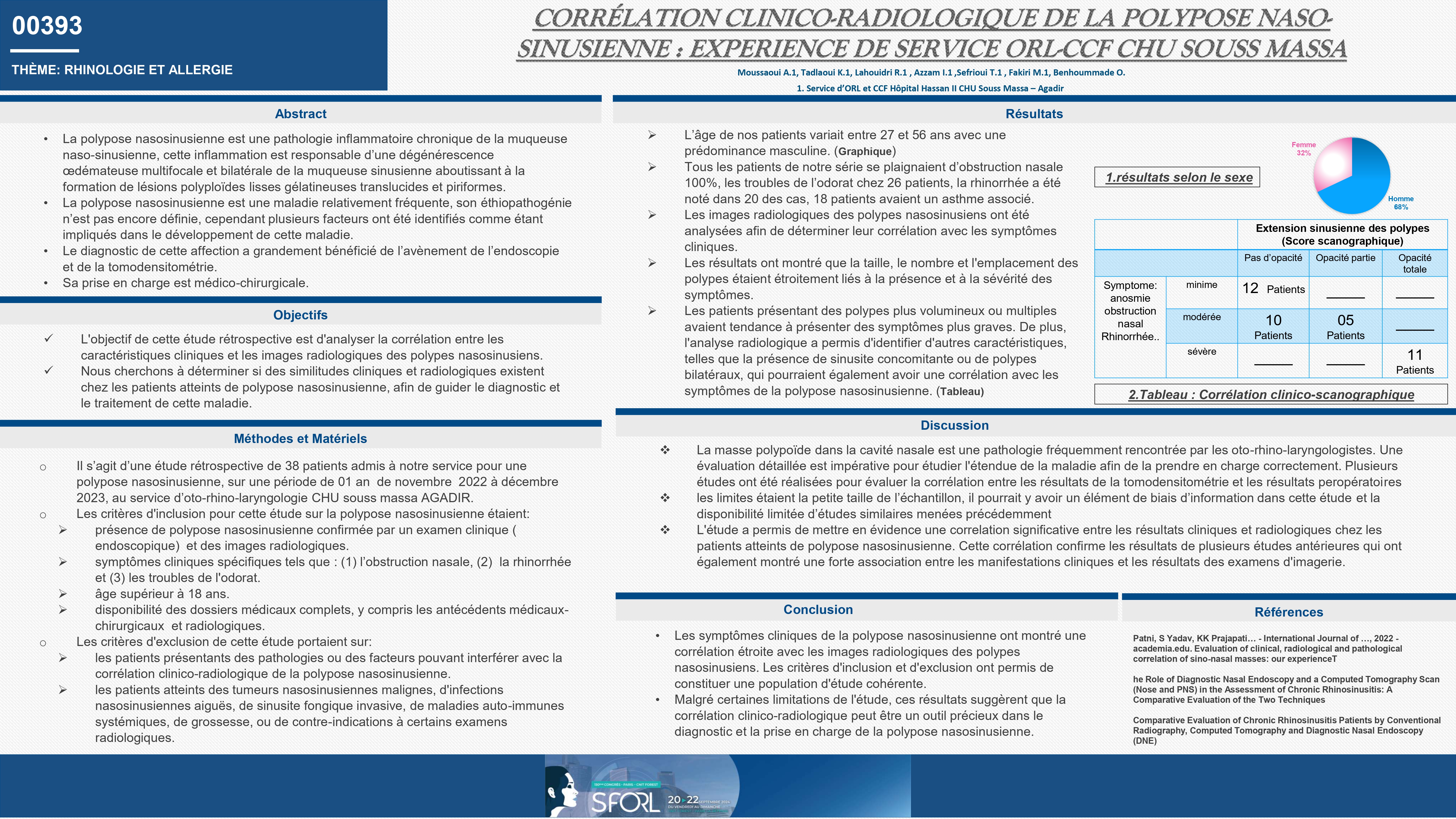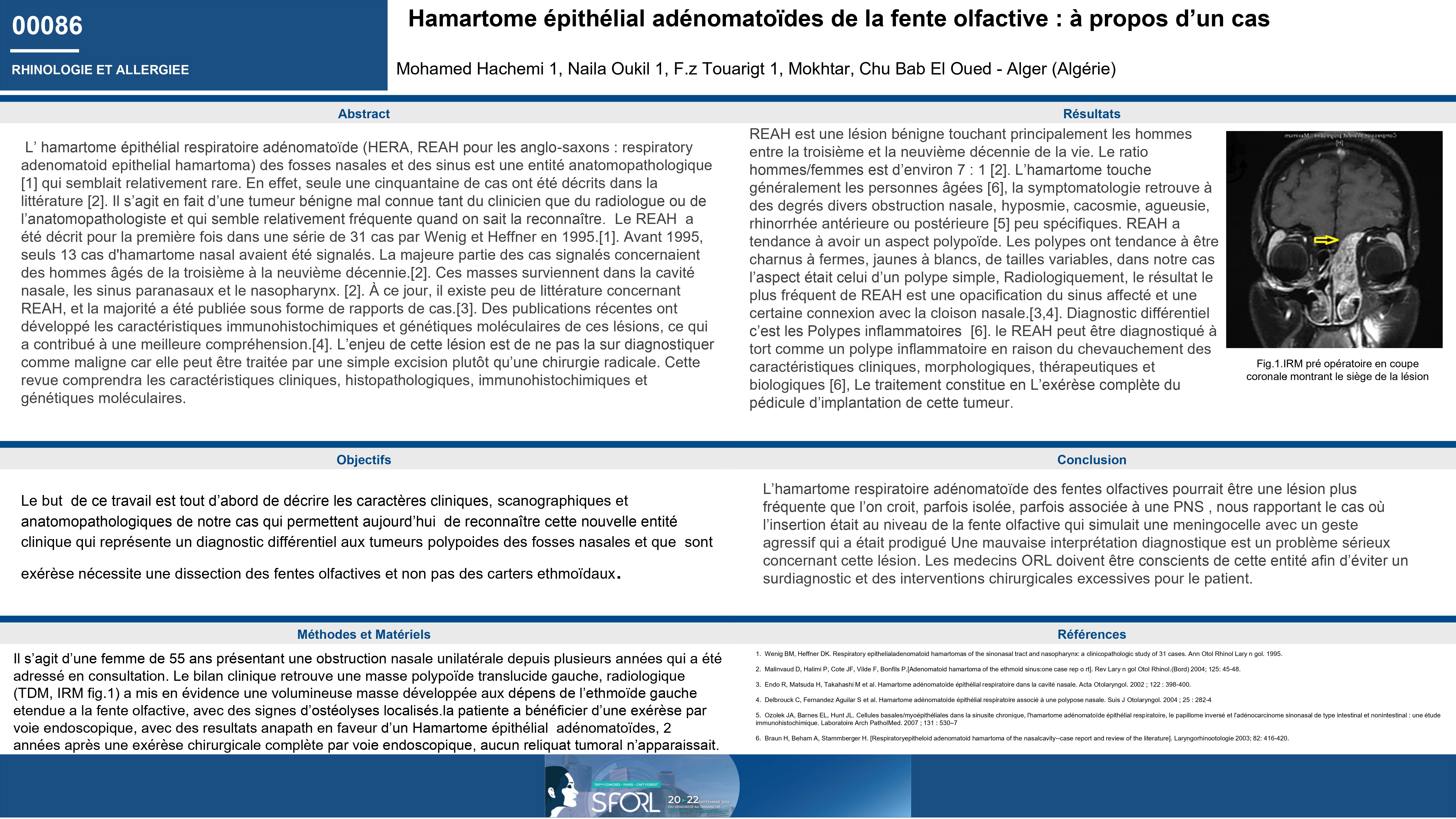 | PC046 – Abcès fongique à Aspergillus flavus de la cloison nasal compliquant une chirurgie nasosinusienne a propos d’un cas | Rhinologie et Allergie | rhinologie-et-allergie | |