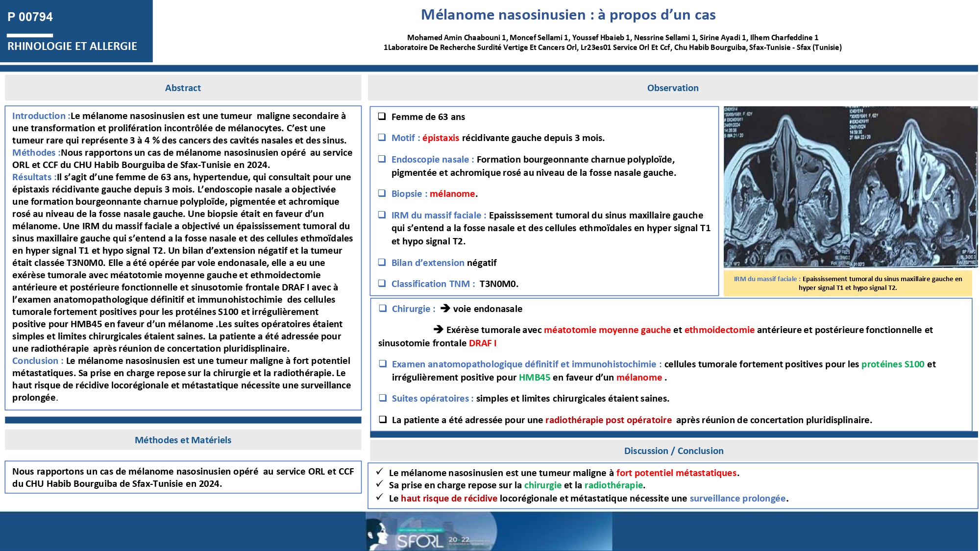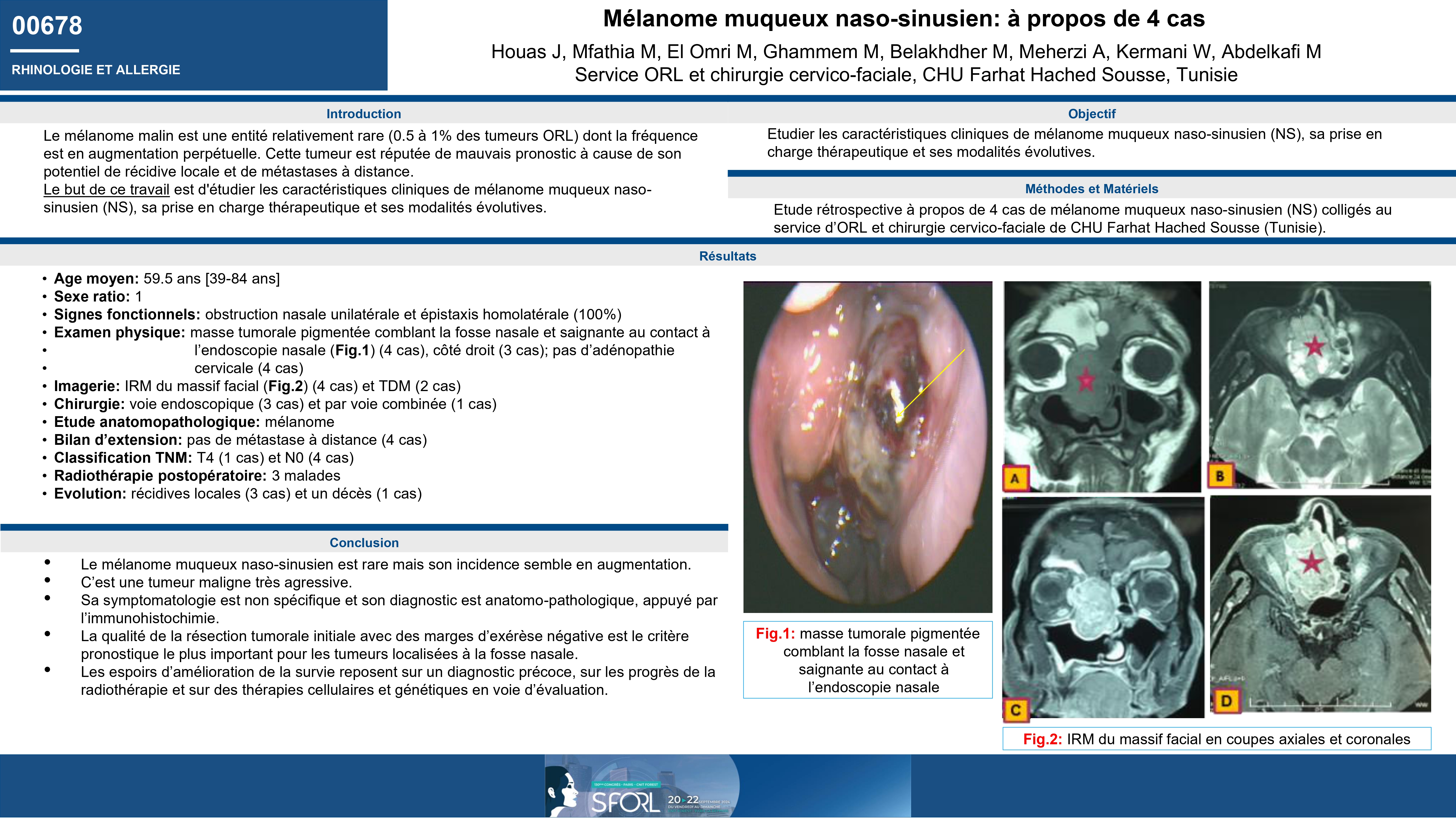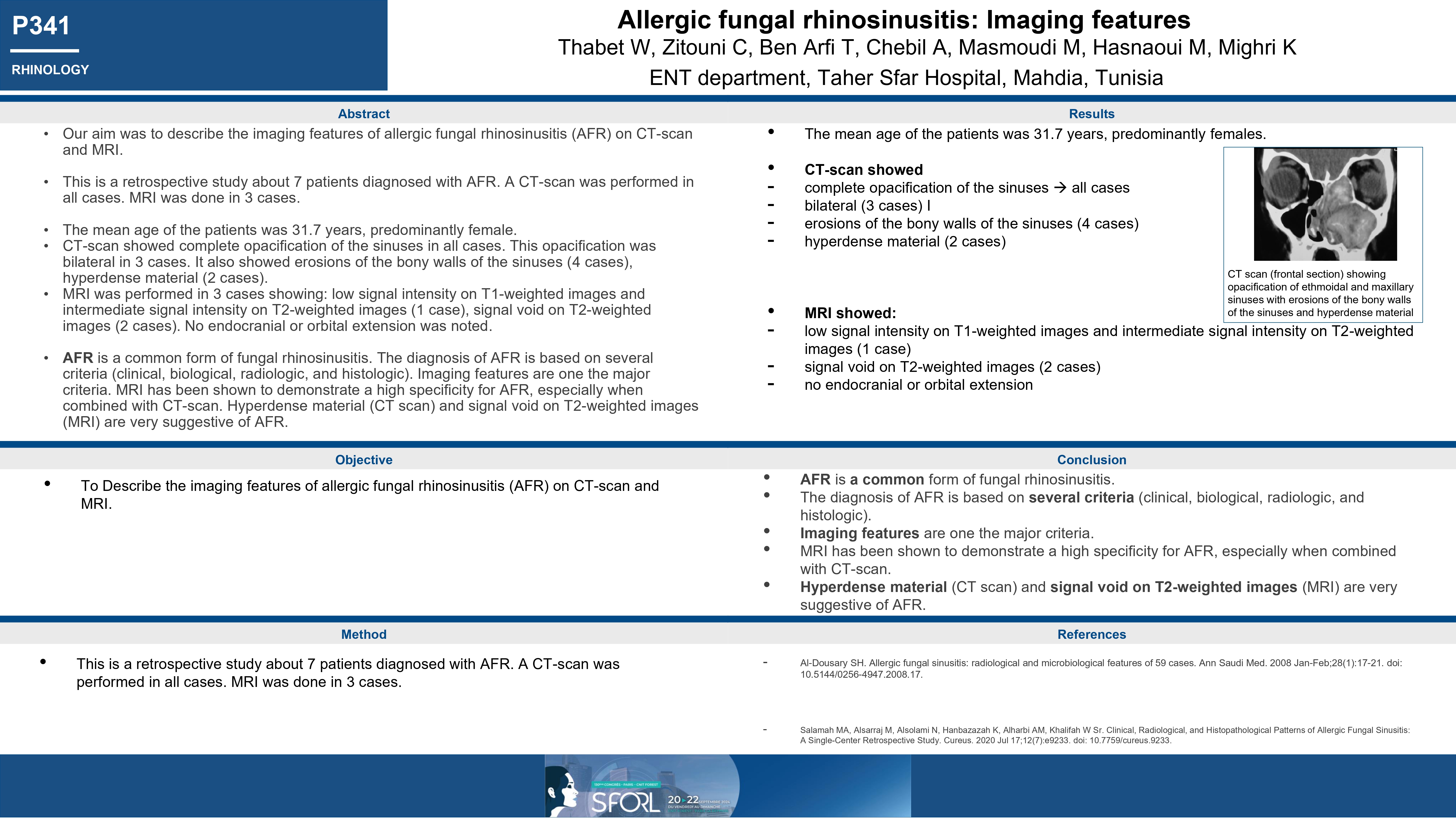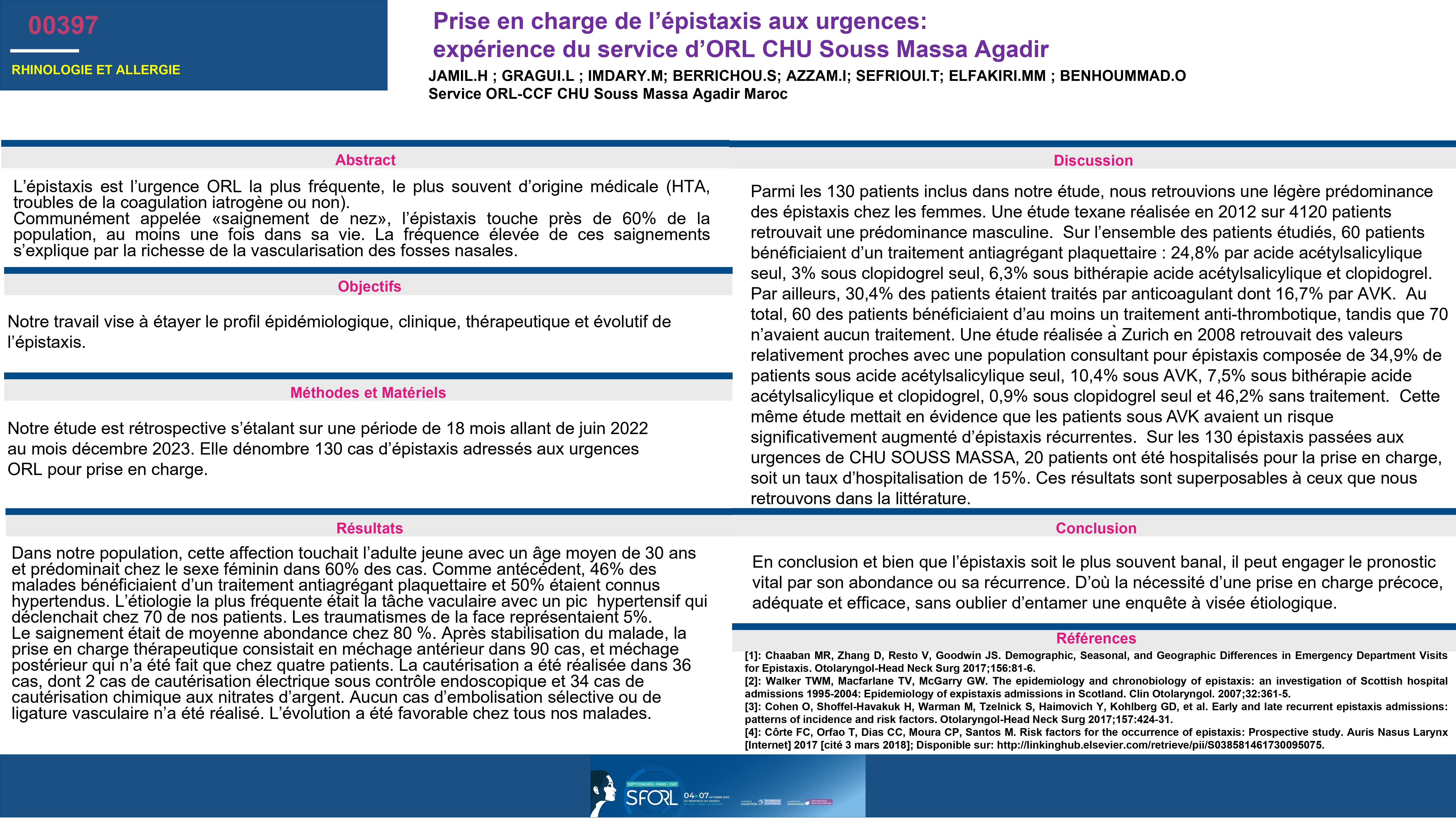 | PC046 – Abcès fongique à Aspergillus flavus de la cloison nasal compliquant une chirurgie nasosinusienne a propos d’un cas | Rhinologie et Allergie | rhinologie-et-allergie | |