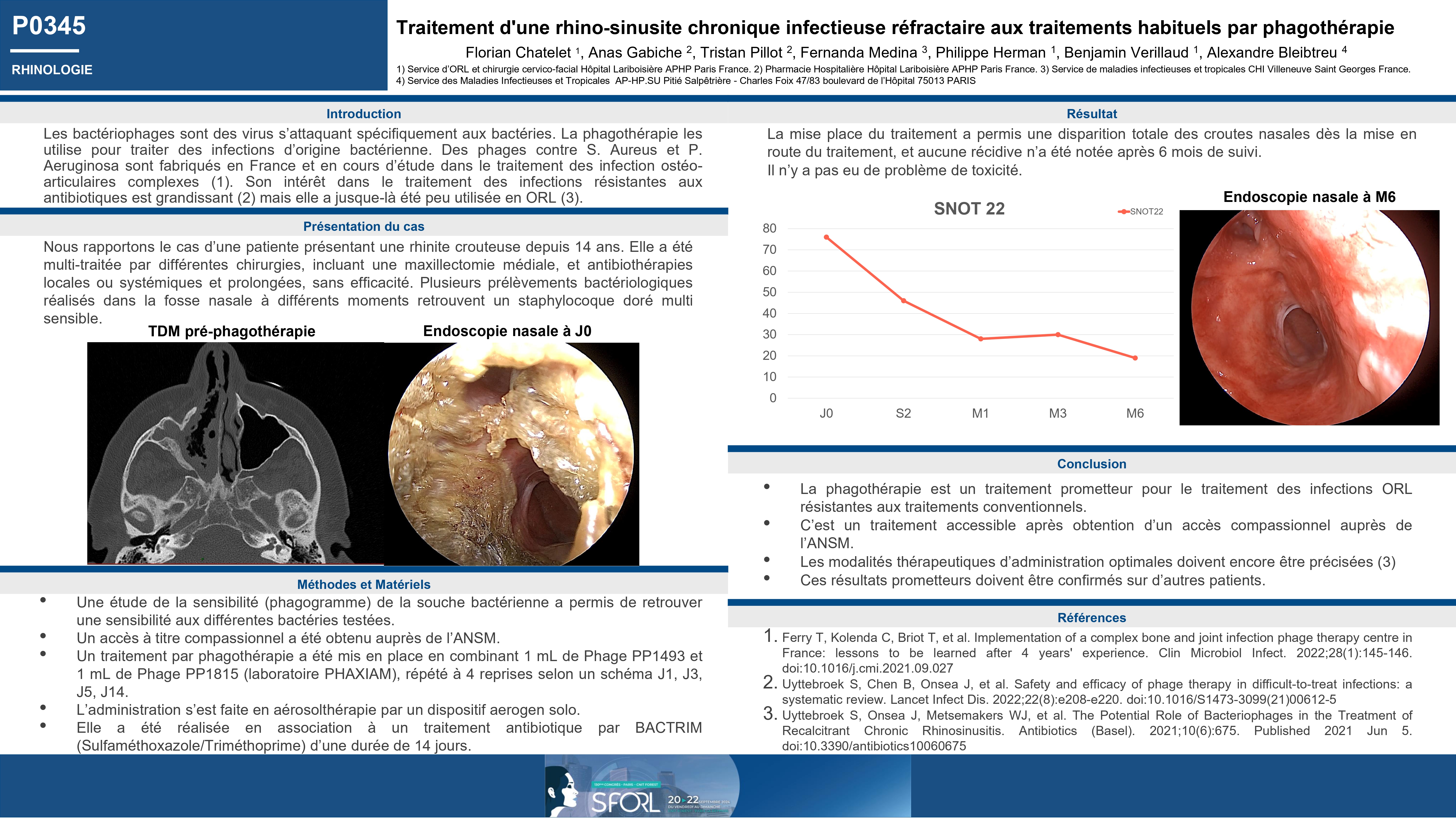 | PC045 – Traitement d’une rhinosinusite chronique infectieuse réfractaire aux traitements habituels par phagothérapie | Rhinologie et Allergie | rhinologie-et-allergie | |