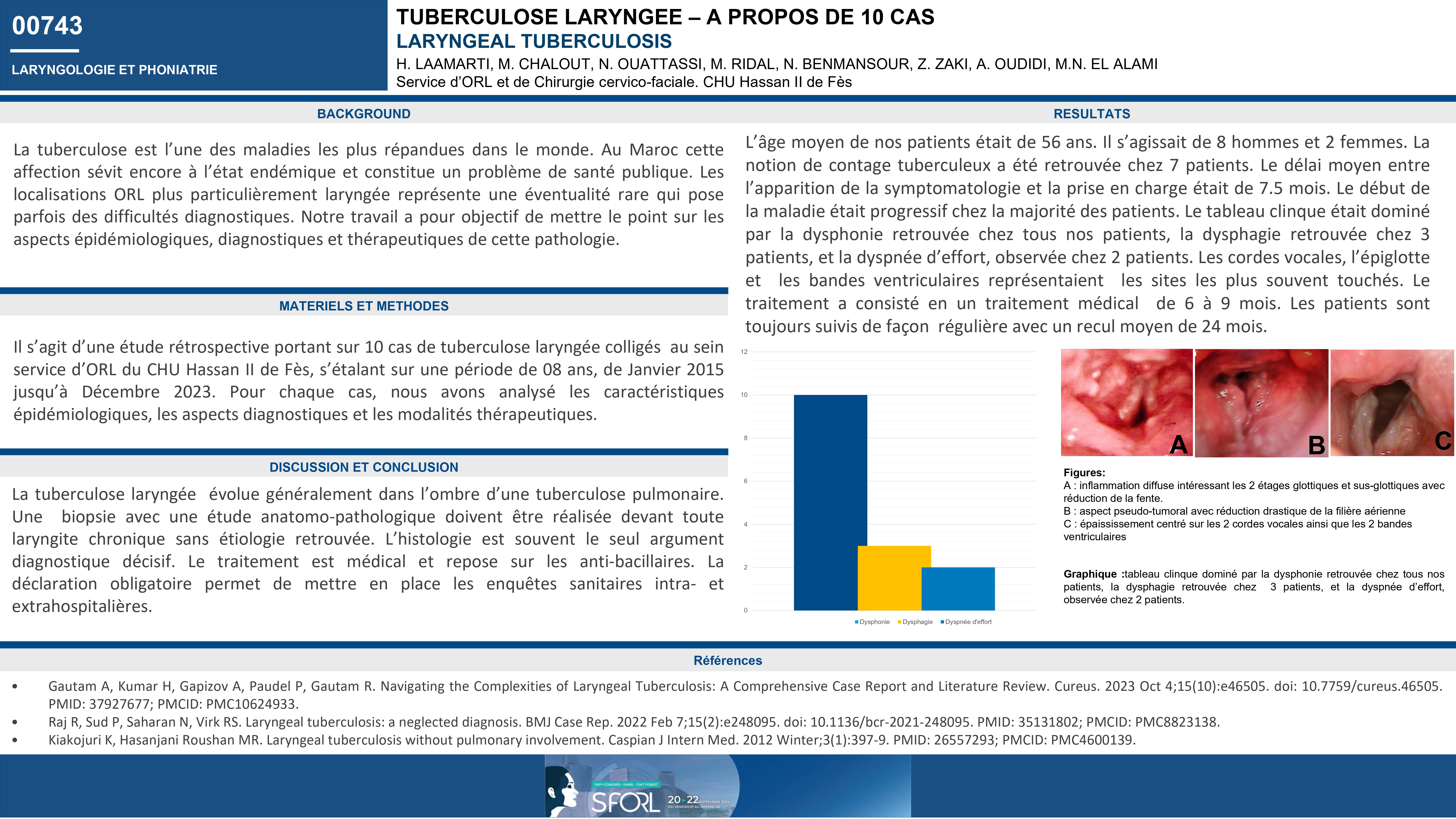 | PC021 – Tuberculose Laryngée – A propos de 10 cas | Laryngologie et Phoniatrie | laryngologie-et-phoniatrie | |
