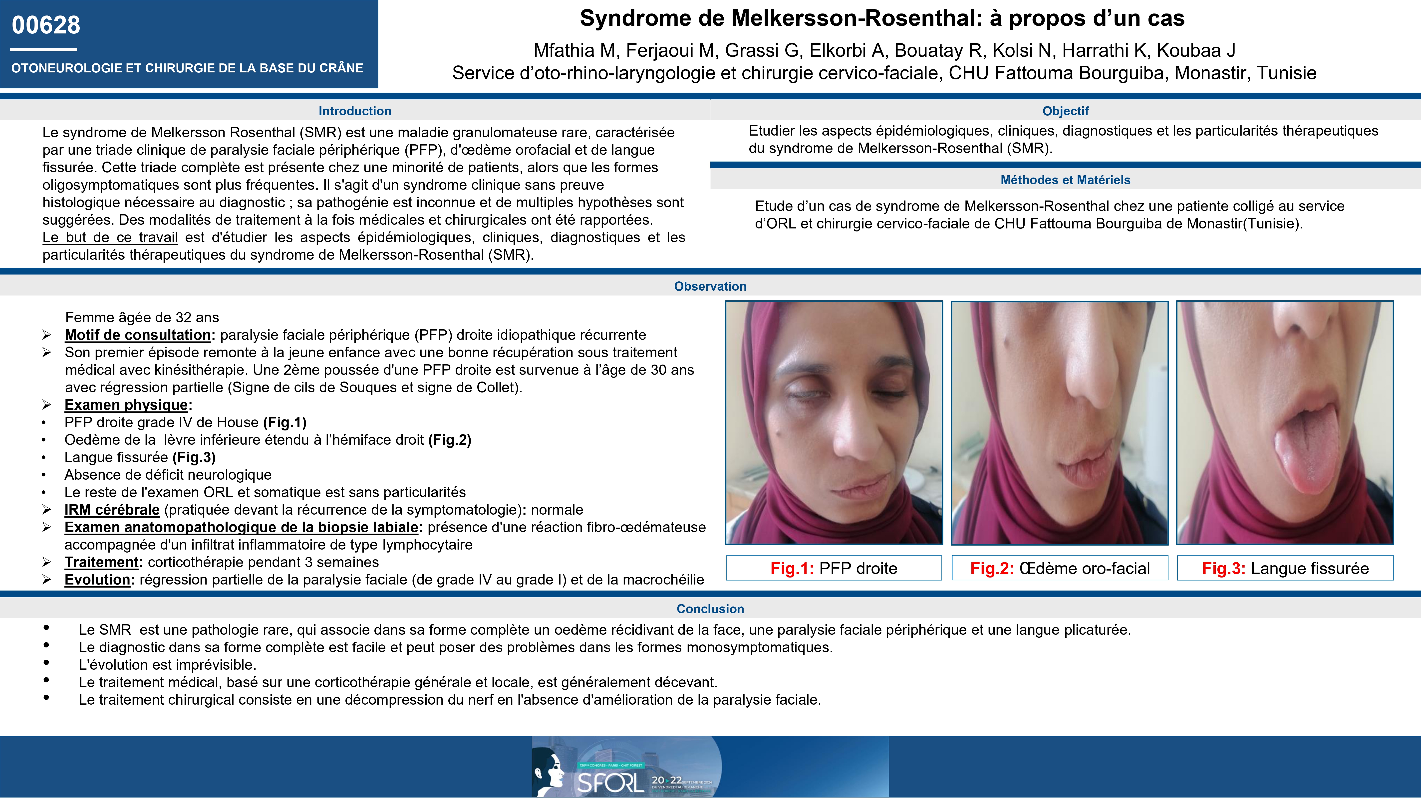 | PC055 – Syndrome de Melkersson-Rosenthal: à propos d’un cas | Otoneurologie et chirurgie de la base du crâne | otoneurologie-et-chirurgie-de-la-base-du-crane |