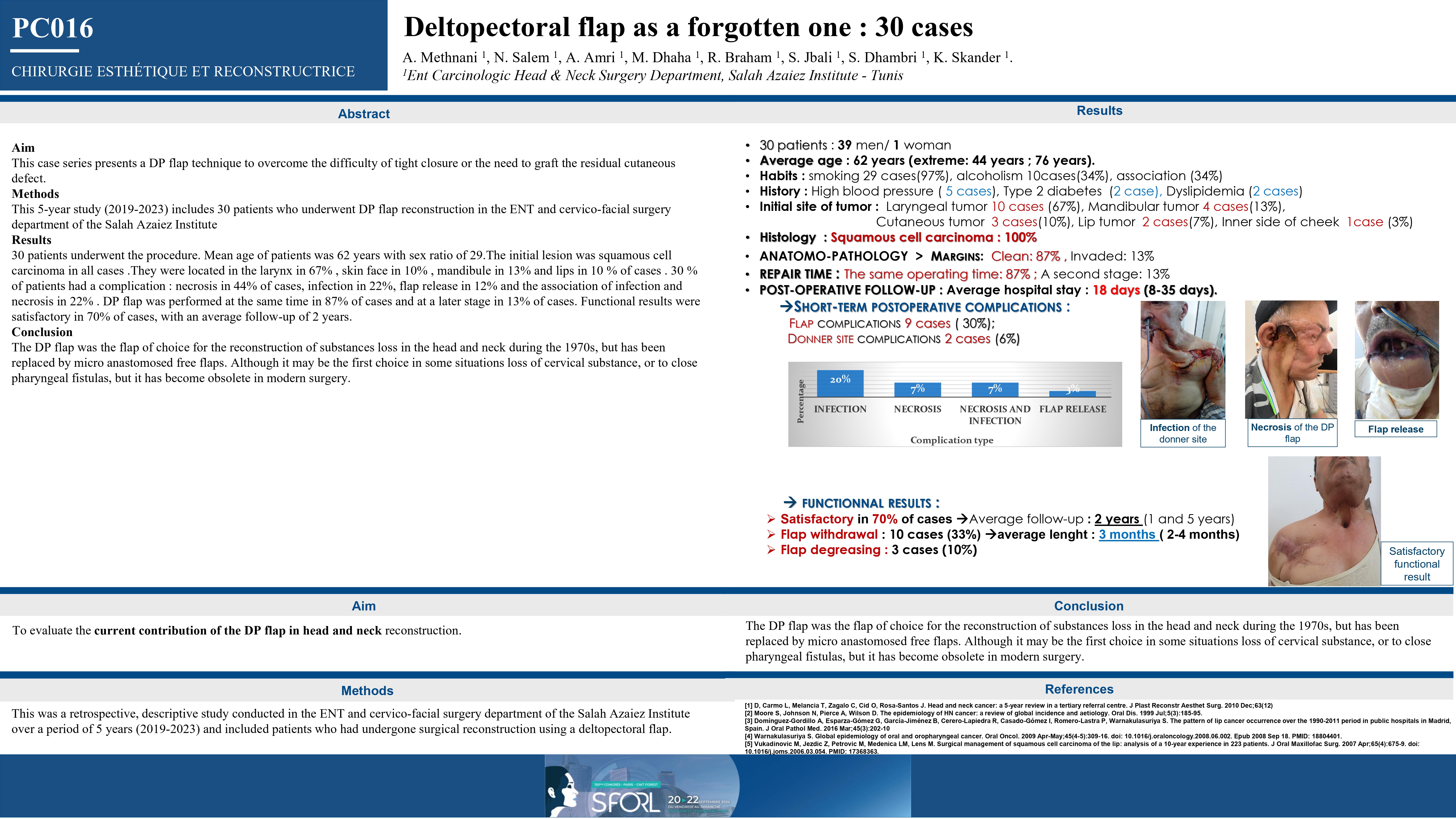 | PC016 – Deltopectoralflap as a forgotten one : 30 cases | Chirurgie esthétique et reconstructrice | chirurgie-esthetique-et-reconstructrice | |