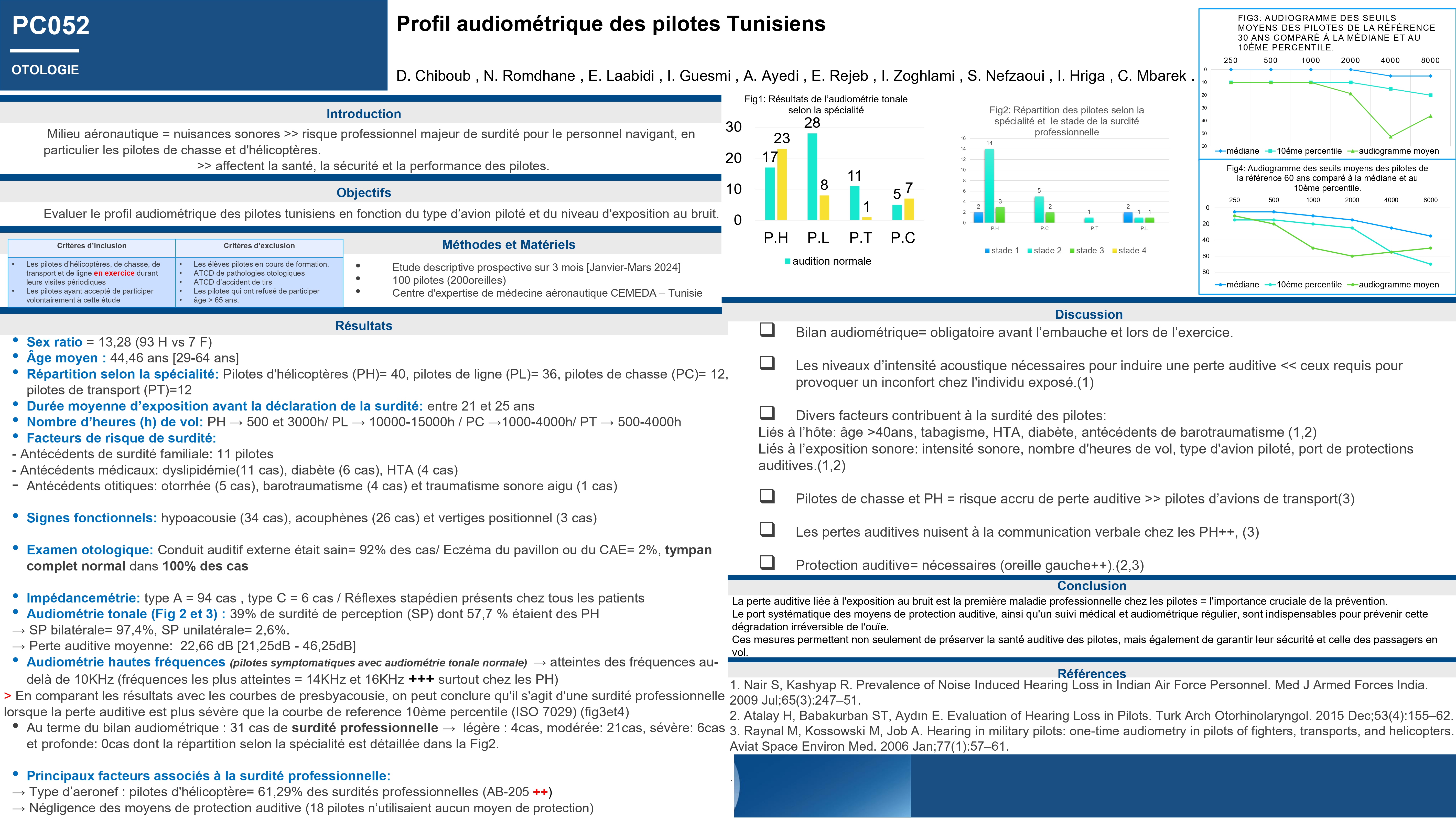| PC052 – Profil audiométrique des pilotes Tunisiens | Audiologie | audiologie | |
